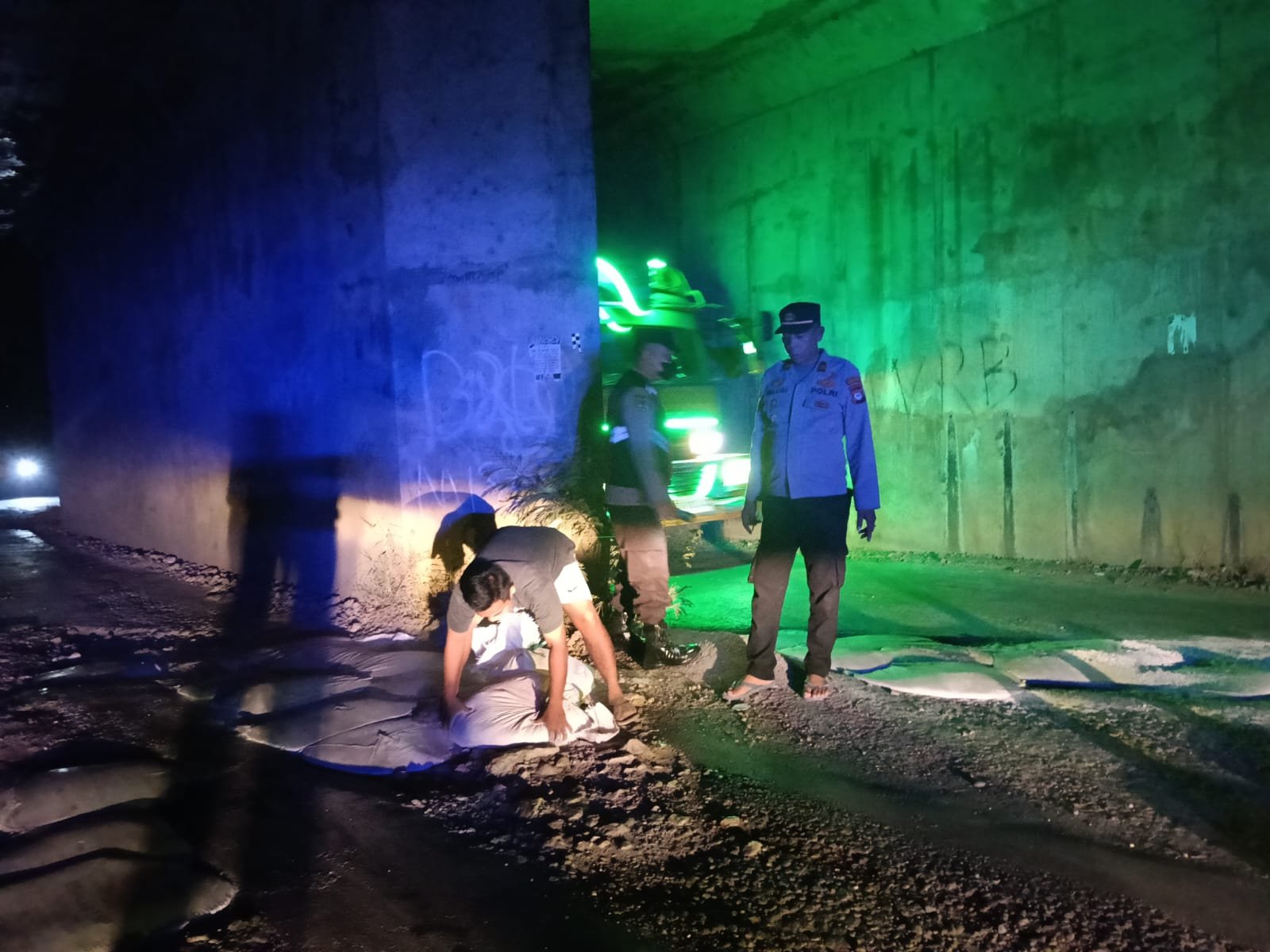 Lubang-lubang di jalan tersebut dinilai berisiko tinggi, terutama bagi kendaraan yang melintas pada malam hari. Tanpa menunggu laporan resmi, Kapolsek segera mengajak pemuda setempat yang kebetulan melintas untuk bersama-sama menimbun lubang menggunakan limbah debu batu olahan.