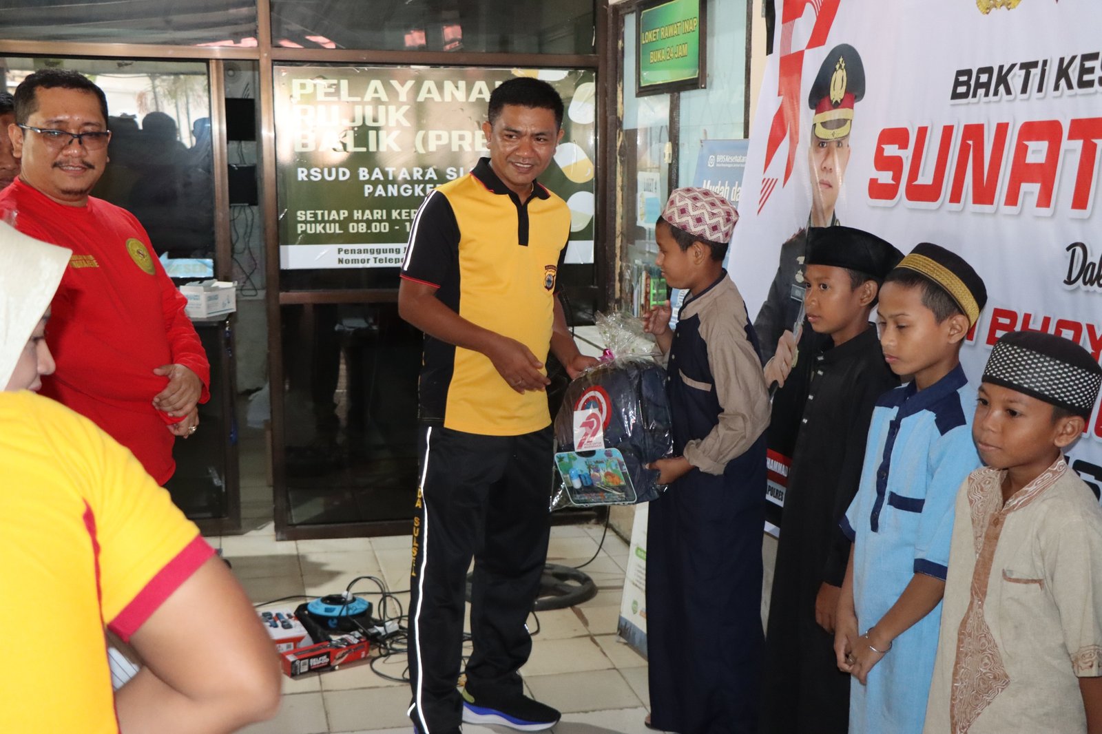 Sebanyak 80 anak dari berbagai wilayah di Kabupaten Pangkep tercatat sebagai peserta sunat massal dan mendapatkan pelayanan medis secara gratis, lengkap dengan bingkisan dari Polres Pangkep.