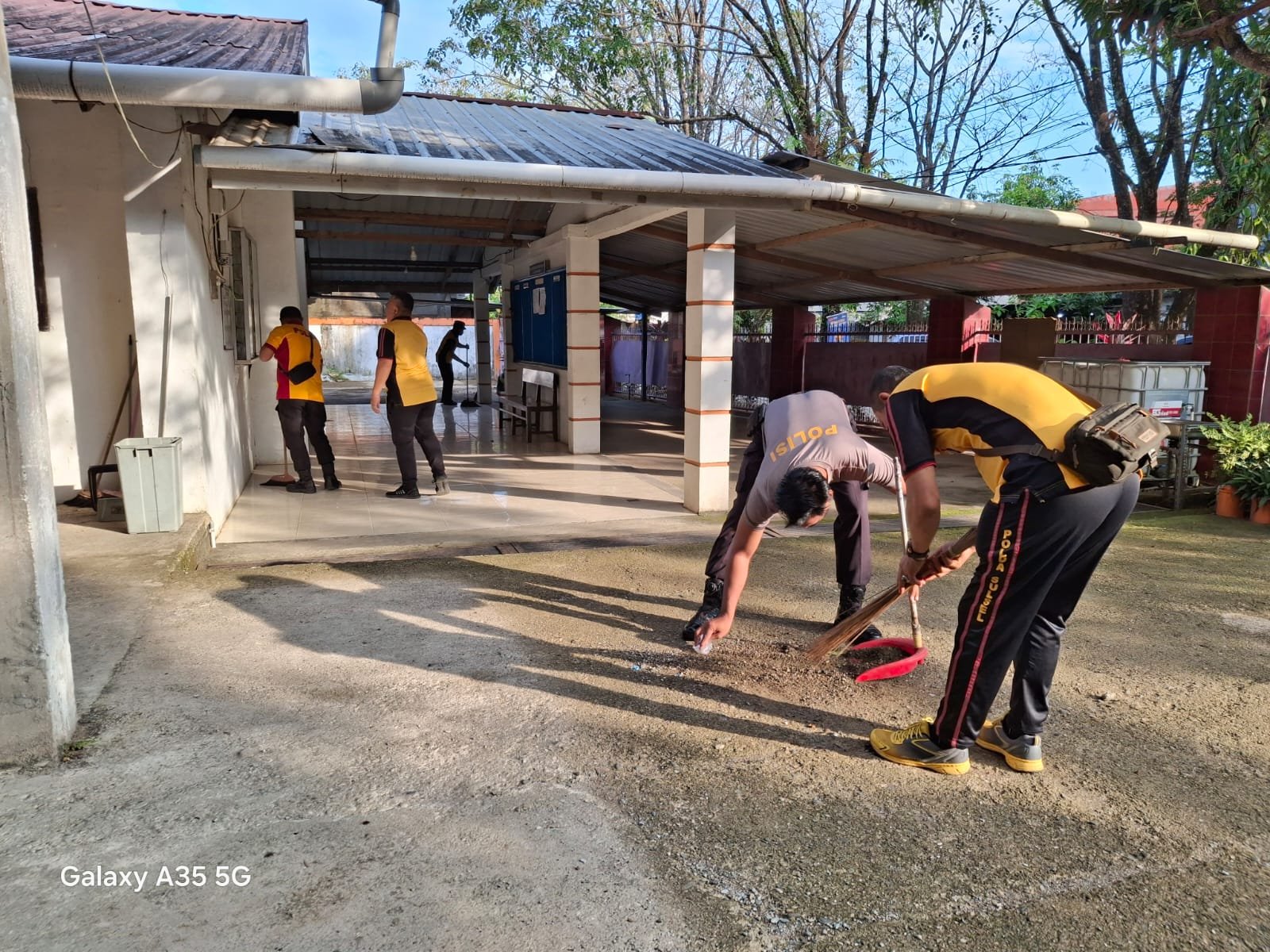 Dengan penuh semangat, personel Polsek dan pengurus gereja bersama-sama membersihkan lingkungan gereja. Tak hanya memberi dampak positif bagi tempat ibadah, kegiatan ini juga mempererat hubungan antara aparat keamanan dan masyarakat lintas iman.