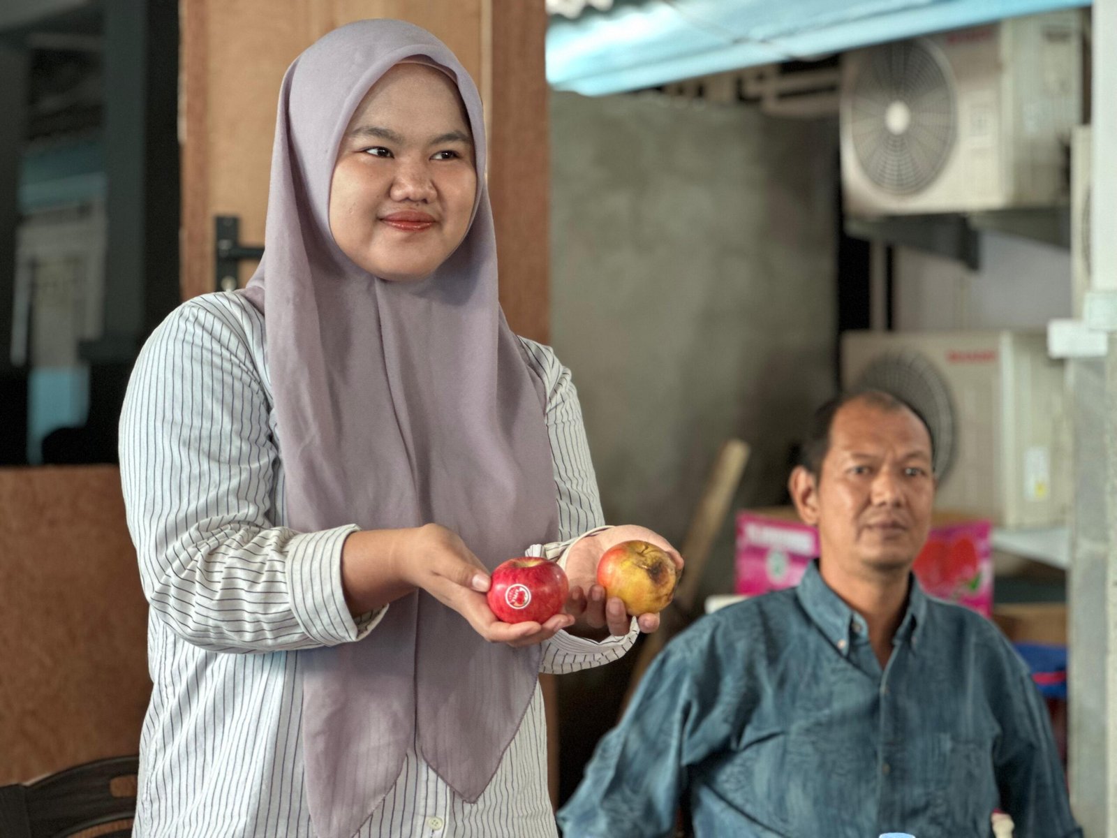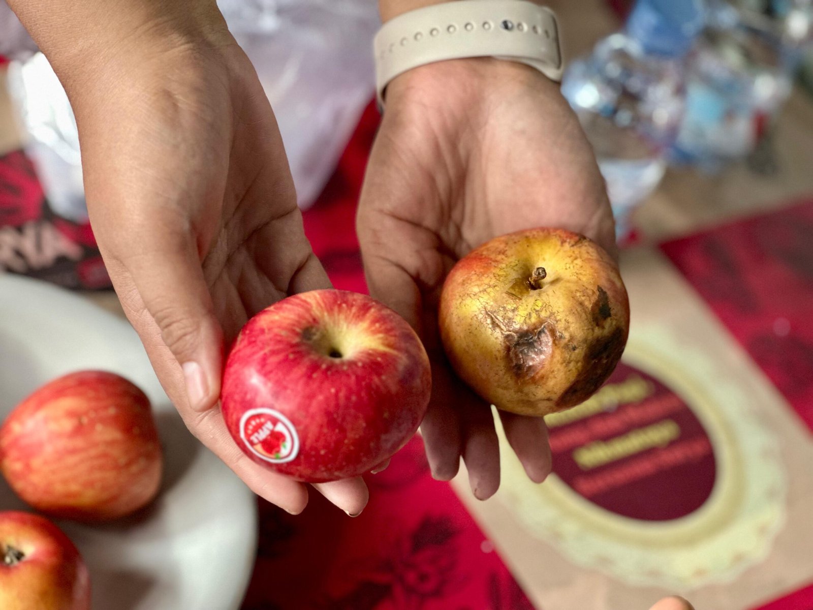 “Dari 3.607 paket apel yang kami siapkan, hanya satu buah yang ditemukan dalam kondisi tidak layak. Buah tersebut tidak dibagikan dan langsung dipisahkan sesuai SOP. Apel yang digunakan adalah apel Fuji premium,” jelasnya.