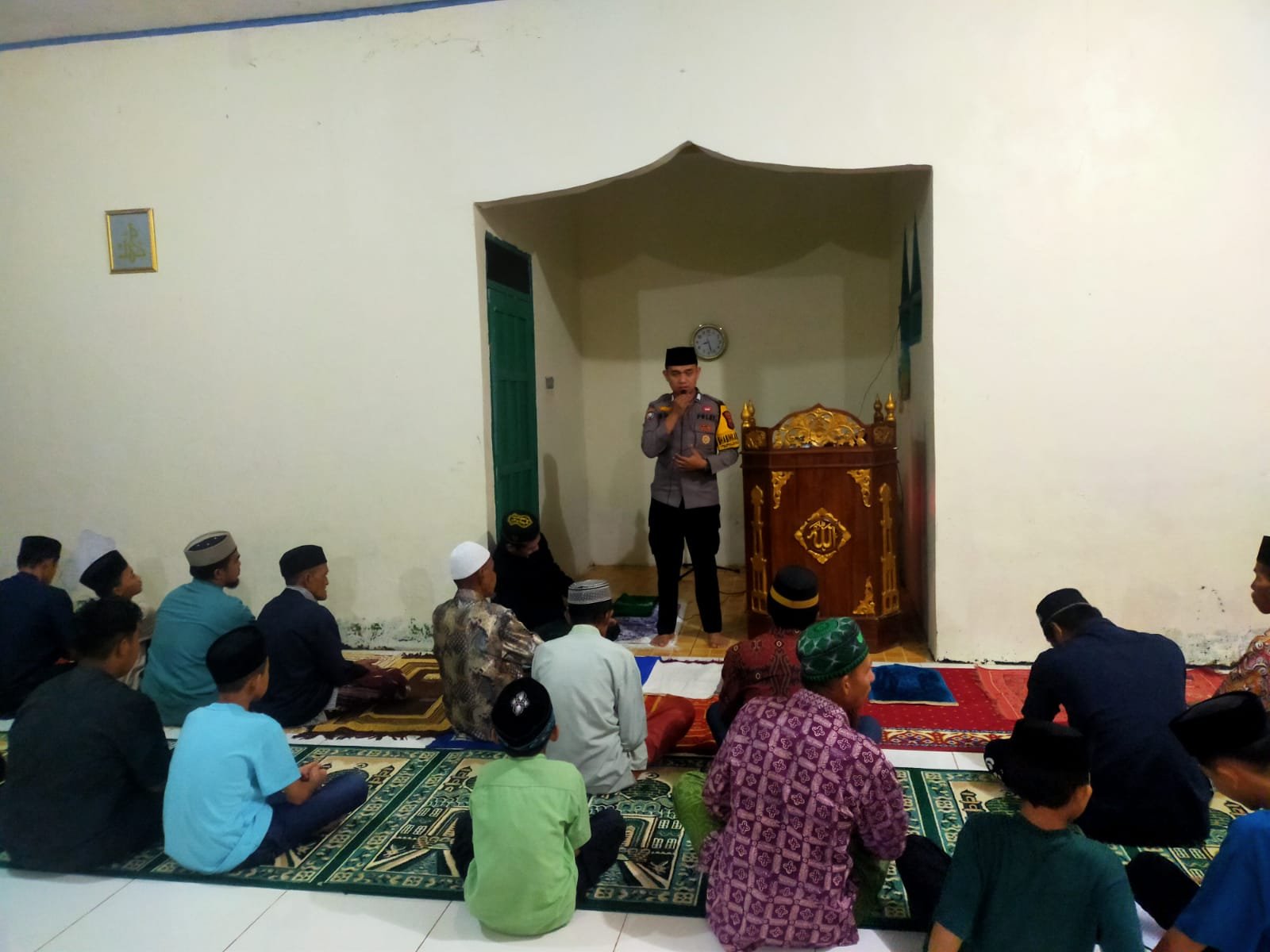 bhabinkamtibmas desa bulu tellue laksanakan pengamanan sholat isya dan tarawih serta sampaikan imbauan kamtibmas jelang malam takbiran