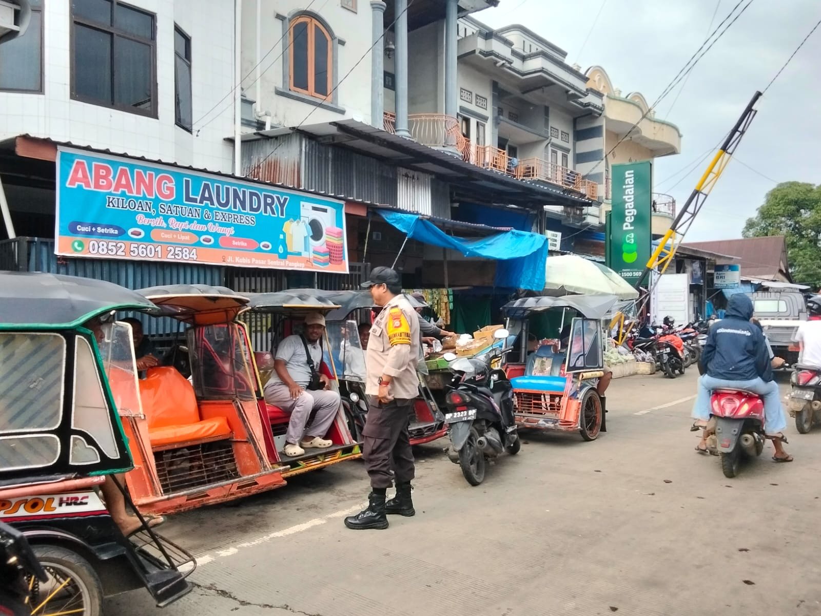 dalam giat patroli bhabinkamtibmas ini menyempatkan untuk memberikan himbauan kamtibmas kepada tukang bentor, terutama agar tetap mematuhi peraturan lalulintas, dan mengutamakan keselamatan diri, penumpang, maupun pengguna jalan lainnya