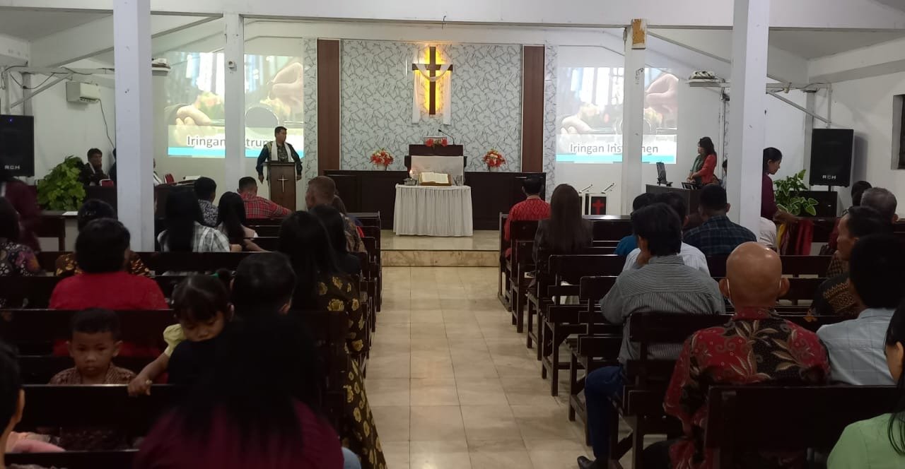 Ibadah mingguan tersebut dipimpin oleh Pnt. Magdalena Saloko, S.Pd., dengan mengangkat tema “Dia Adalah Allah Bersama Manusia” yang bersumber dari bacaan Alkitab Yesaya 7:10–17. Kegiatan ibadah berlangsung dengan khidmat dan penuh kekhusyukan.