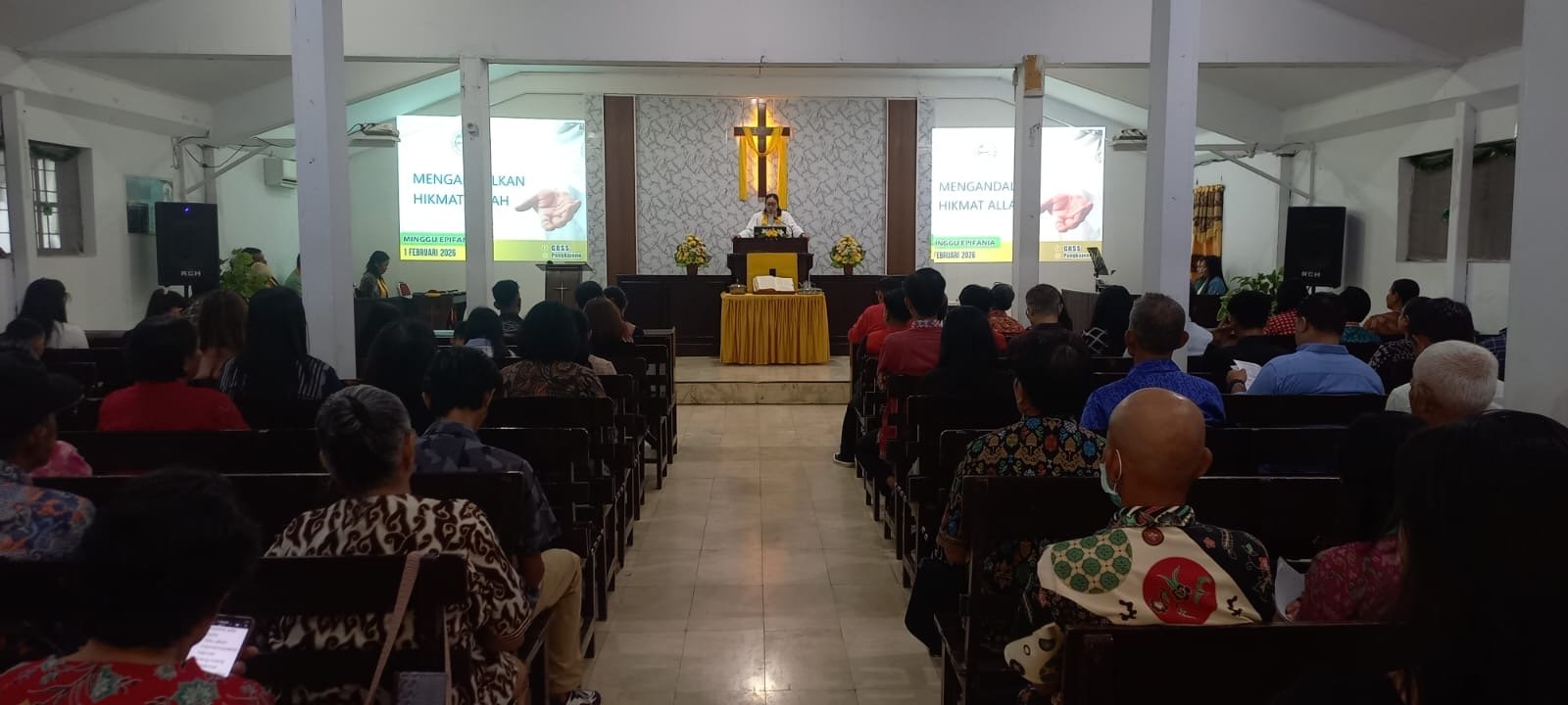 Ibadah mingguan jemaat GKSS Klasis Mapatuwo dipimpin oleh Pendeta Charisma Putriana, S.Th., dengan tema “Mengandalkan Hikmat Allah” yang diambil dari bacaan Alkitab 1 Korintus 1:18–31. Jumlah jemaat yang hadir tercatat sebanyak 121 orang.