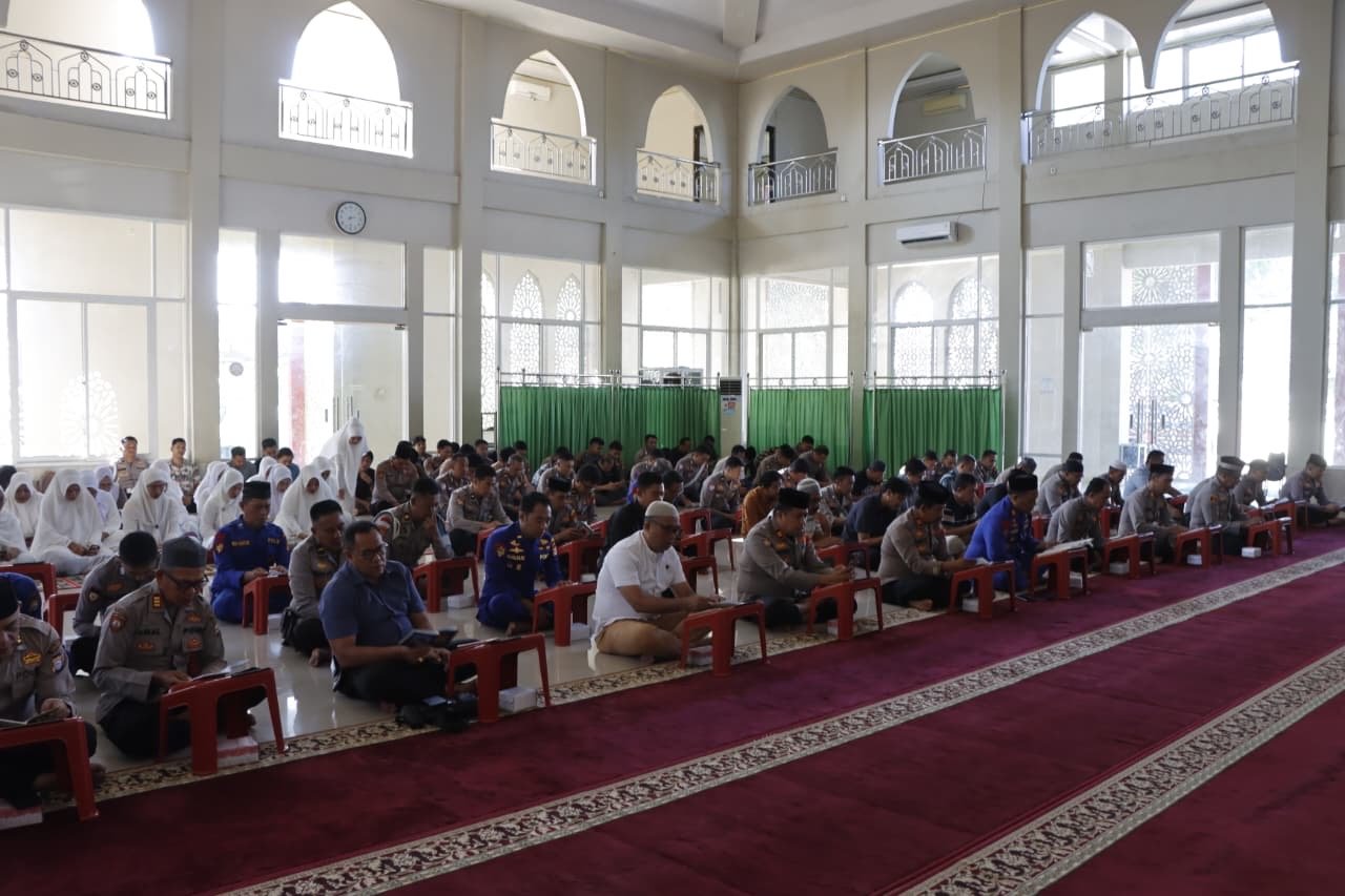 Kegiatan rutin yang dilaksanakan setiap hari Kamis pagi ini diikuti oleh seluruh Pejabat Utama, personel Polres, dan ASN Polri. Binrohtal diawali dengan pembacaan ayat suci Al-Qur’an, dilanjutkan dengan ceramah agama yang memberikan pencerahan dan motivasi dalam menjalankan tugas dengan penuh tanggung jawab serta keikhlasan.