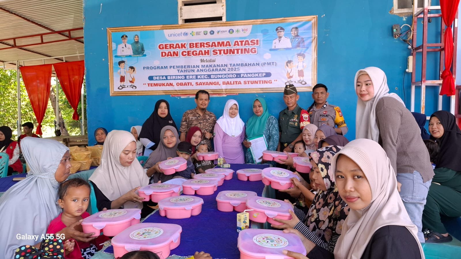 Program ini tidak dijalankan sendiri, tetapi mengusung semangat kolaborasi dengan melibatkan berbagai elemen seperti Penyuluhan Lapangan Keluarga Berencana (PL-KB), Babinsa, Bhabinkamtibmas, Tim Penggerak PKK Desa, kader Posyandu, serta tenaga kesehatan dari Puskesmas Bungoro. Fokus utama kegiatan yakni pemeriksaan kesehatan anak dan penyaluran makanan tambahan bergizi bagi balita yang terindikasi mengalami gangguan pertumbuhan.