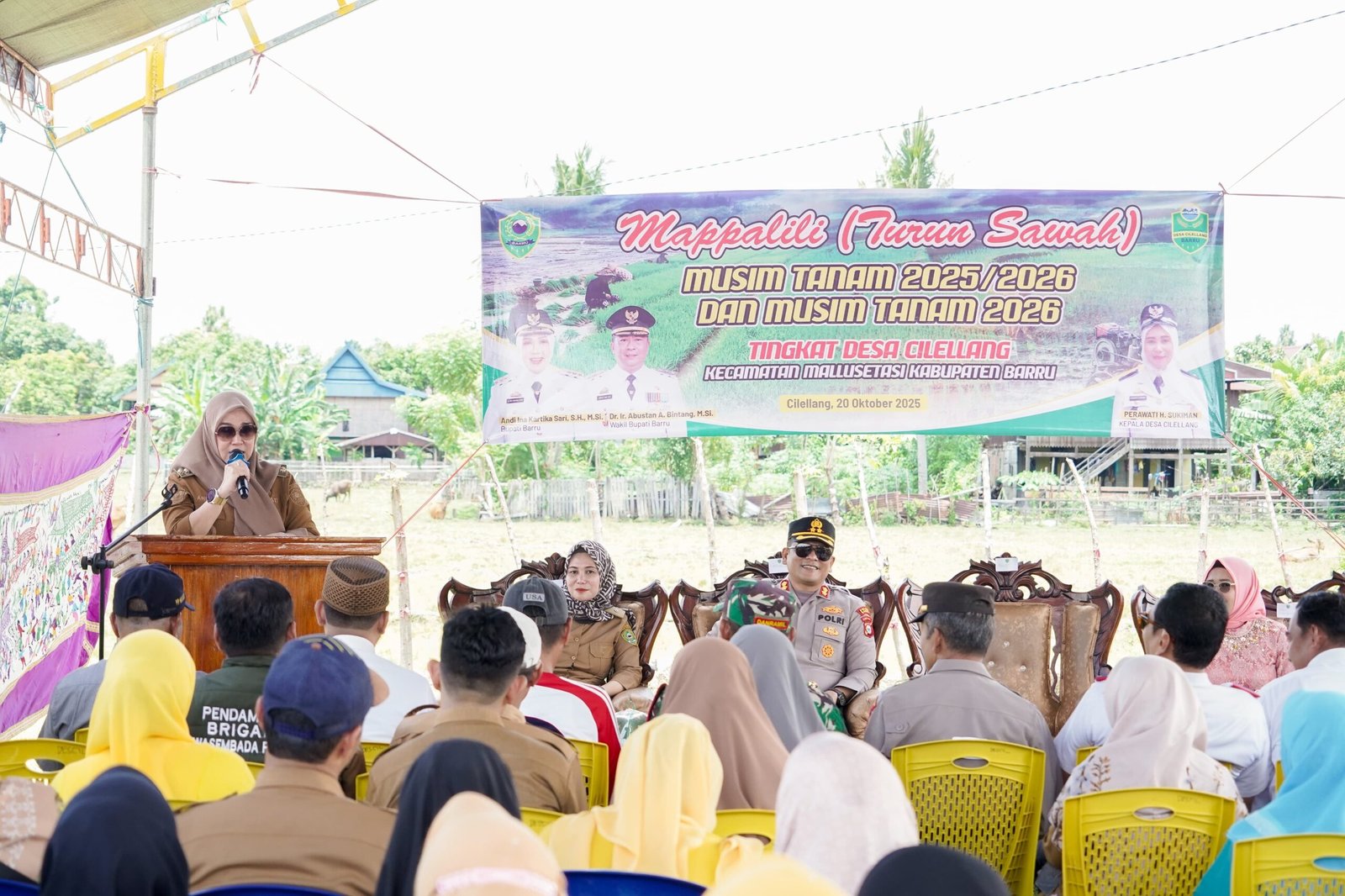 Bidik-jurnalis.com, Barru — Bupati Barru, Andi Ina Kartika Sari, S.H., M.Si., menghadiri kegiatan Turun Sawah dan Musyawarah Mappalili Musim Tanam 2025/2026 serta Musim Tanam 2026 tingkat Desa Cilellang, Kecamatan Mallusetasi, bersama Kelompok Tani Mattiro Bulu, Senin (20/10/2025) di Cilellang Utara.