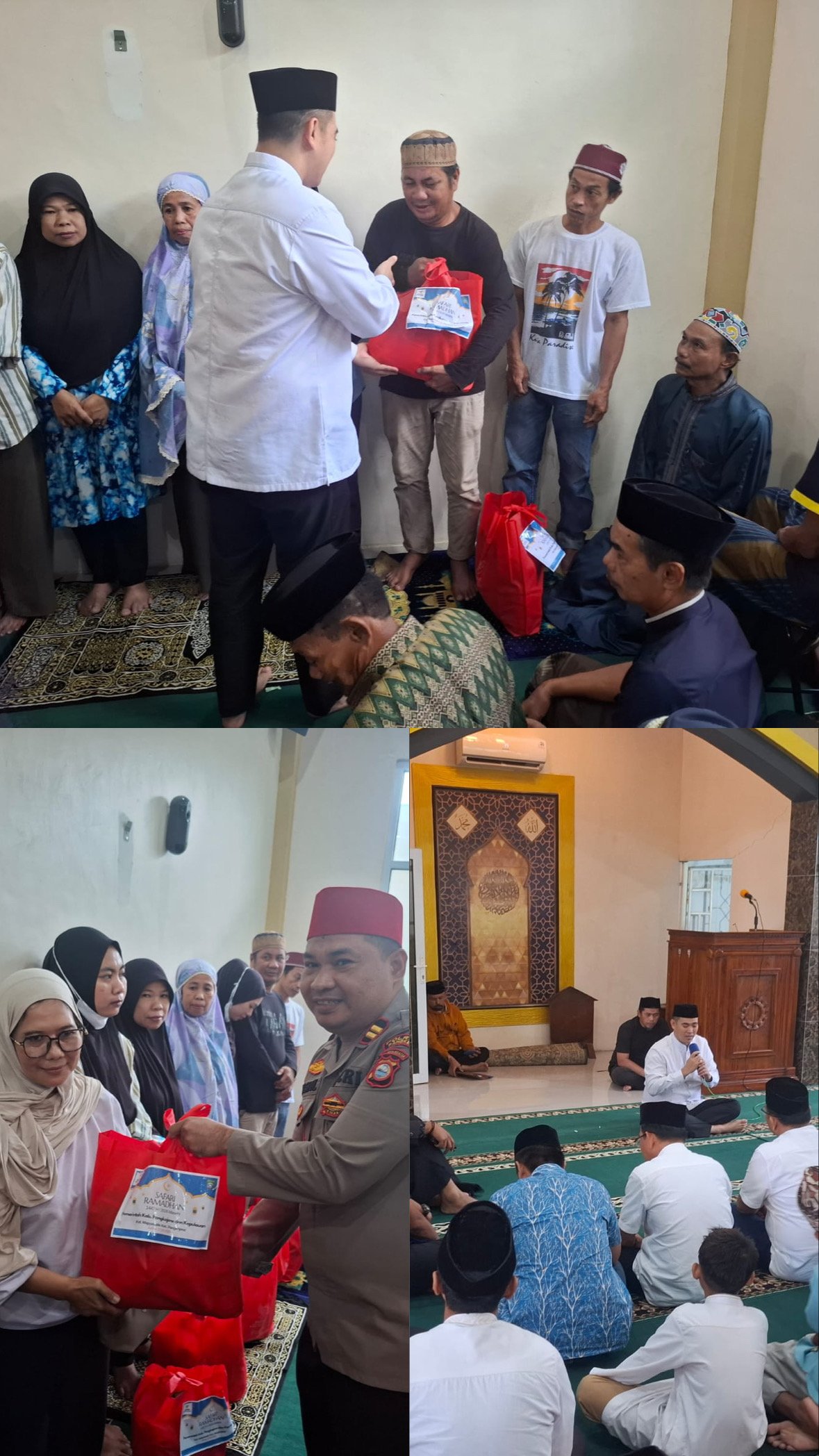 Kegiatan Safari Ramadan diawali dengan pelaksanaan Salat Jumat berjamaah, dilanjutkan dengan penyerahan bantuan kepada masyarakat. Bantuan yang diserahkan berupa paket sembako kepada 10 orang penerima serta baju muslim kepada 6 orang jamaah masjid.