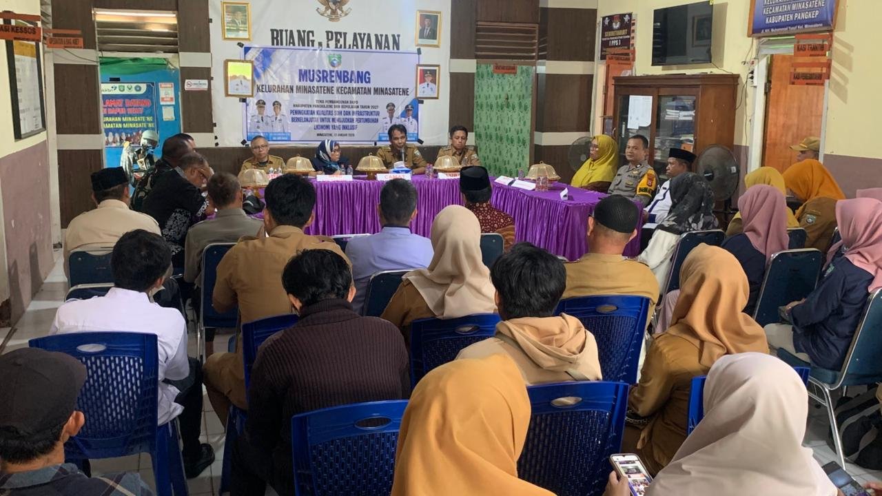 Musrenbang Kelurahan Minasatene mengusung tema “Peningkatan Kualitas SDM dan Infrastruktur Berkelanjutan untuk Mewujudkan Pertumbuhan Ekonomi yang Inklusif” dengan fokus pada tiga sektor prioritas, yaitu pertanian, peternakan, dan swasembada pangan. Kegiatan ini bertujuan untuk menyerap dan menyepakati usulan pembangunan dari masyarakat yang akan menjadi prioritas pembangunan di tingkat kelurahan dan selanjutnya dibahas pada Musrenbang tingkat kecamatan.