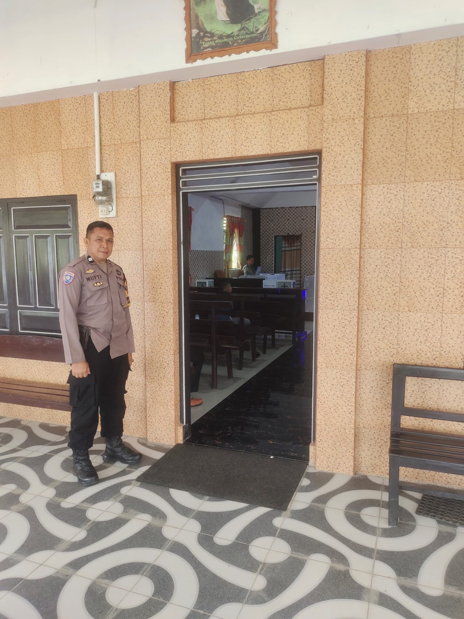 Selama kegiatan berlangsung, Aiptu Mufti turut memantau situasi di sekitar gereja serta memastikan aktivitas jemaat berjalan dengan khidmat tanpa adanya gangguan kamtibmas.