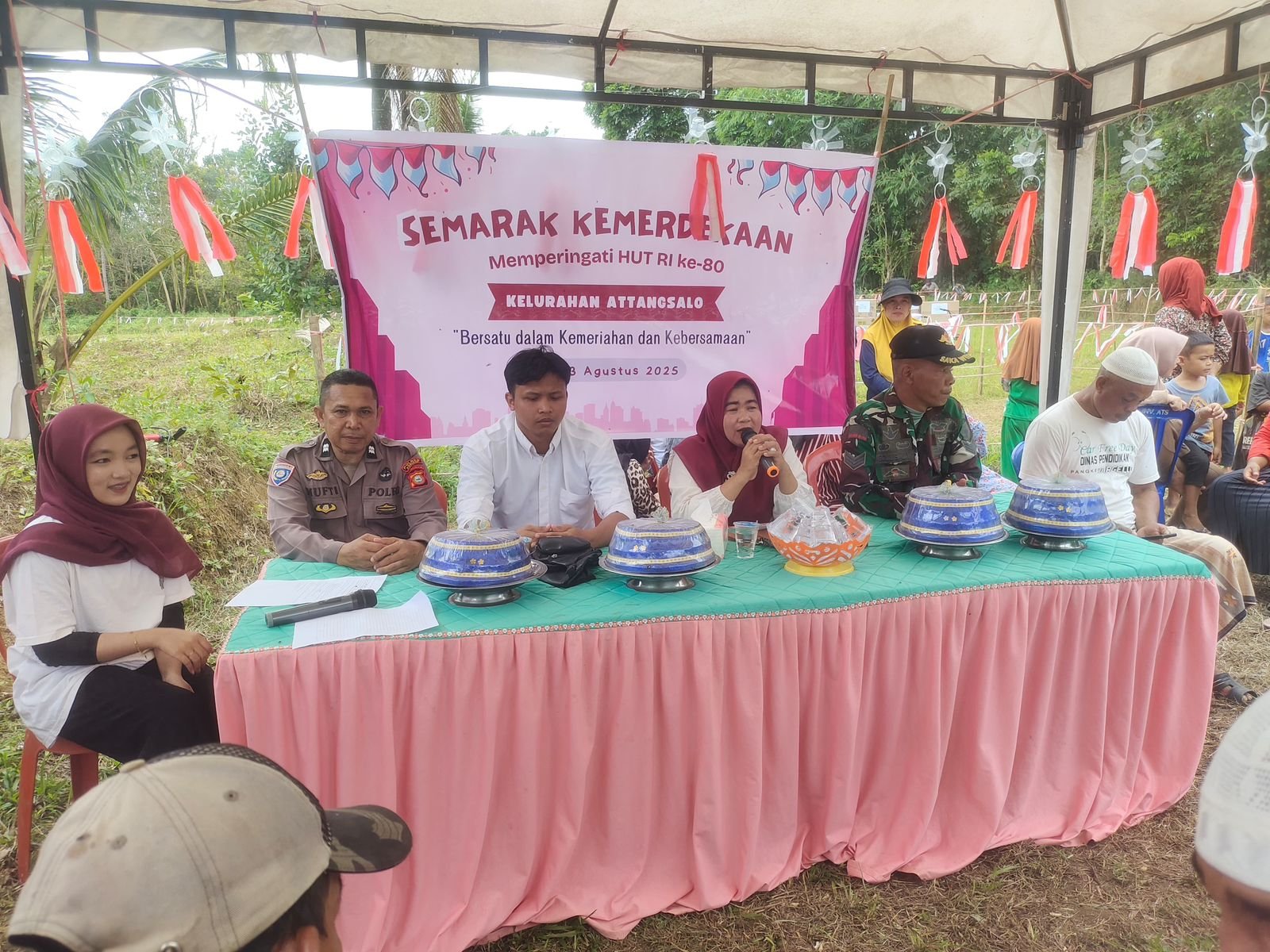 Bidik-jurnalis.com, Pangkep-Dalam rangka memperingati Hari Ulang Tahun (HUT) Republik Indonesia ke-80, Pemerintah Kelurahan Attangsalo, Kecamatan Ma’rang Kabupaten Pangkep, membuka rangkaian perlombaan olahraga dan berbagai kegiatan pertandingan lainnya, Minggu (17/08/2025).