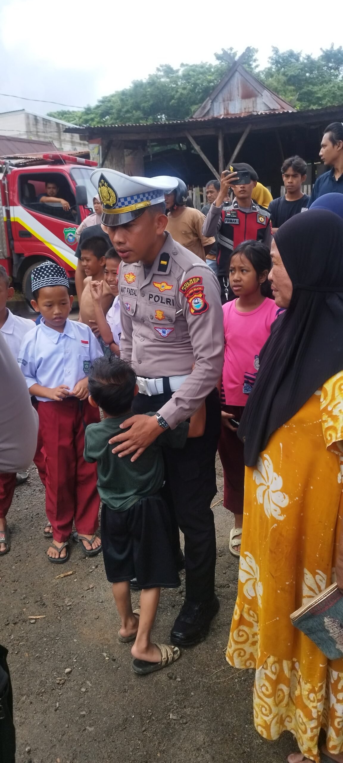 Bidik-jurnalis.com, Pangkep – Di tengah suasana duka pascakebakaran yang melanda pemukiman warga selasa tanggal 27 Januari 2026, Personil Polres Pangkep menunjukkan kepedulian dan empati dengan memberikan dukungan moril kepada anak korban kebakaran. Salah satu bentuk kepedulian tersebut diwujudkan melalui pelukan hangat yang diberikan kepada anak-anak yang terdampak musibah.