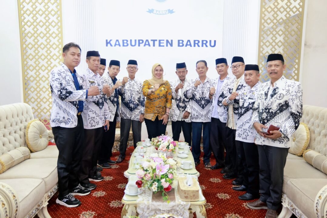 Bupati Barru Andi Ina Kartika Sari, S.H., M.Si, menerima audiensi jajaran pengurus Persatuan Guru Republik Indonesia (PGRI) Kabupaten Barru di Rumah Jabatan Bupati, Kamis (4/12/2025).