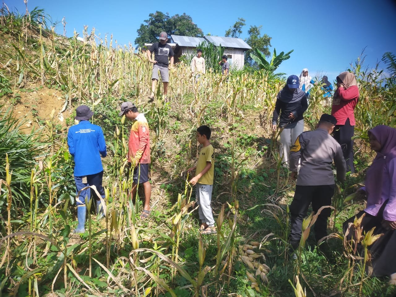 Bidik-jurnalis.com, Tondong Tallasa – Dalam rangka mendukung salah satu program prioritas presiden Republik Indonesia terkait swasembada pangan atau ketehanan pangan,Kepala Desa Malaka Muhammad Albi Rusli bersama Bhabinkamtibmas Desa Malaka Polsel Tondong Tallasa Bripka Abd.Kadir,S.Psi.,M.M. melaksanakan panen perdana tanaman jagung hibrida yang telah ditanam pada bulan April di kebun desa milik Kepala Desa Malaka seluas 1 Hektar.