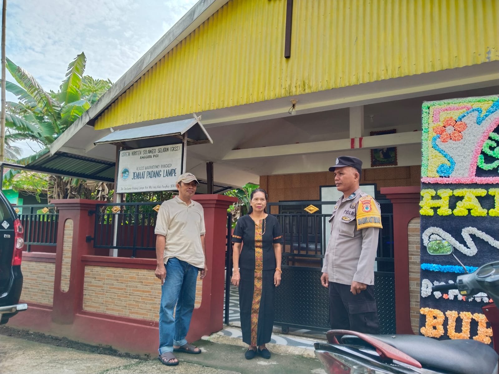 Pengamanan tersebut dipimpin oleh Kanit Intelkam Aiptu Zainuddin, SH bersama Bhabinkamtibmas Ipda H. Abdul Rasid guna memastikan kegiatan ibadah umat Kristiani berjalan dengan aman, tertib, dan lancar.