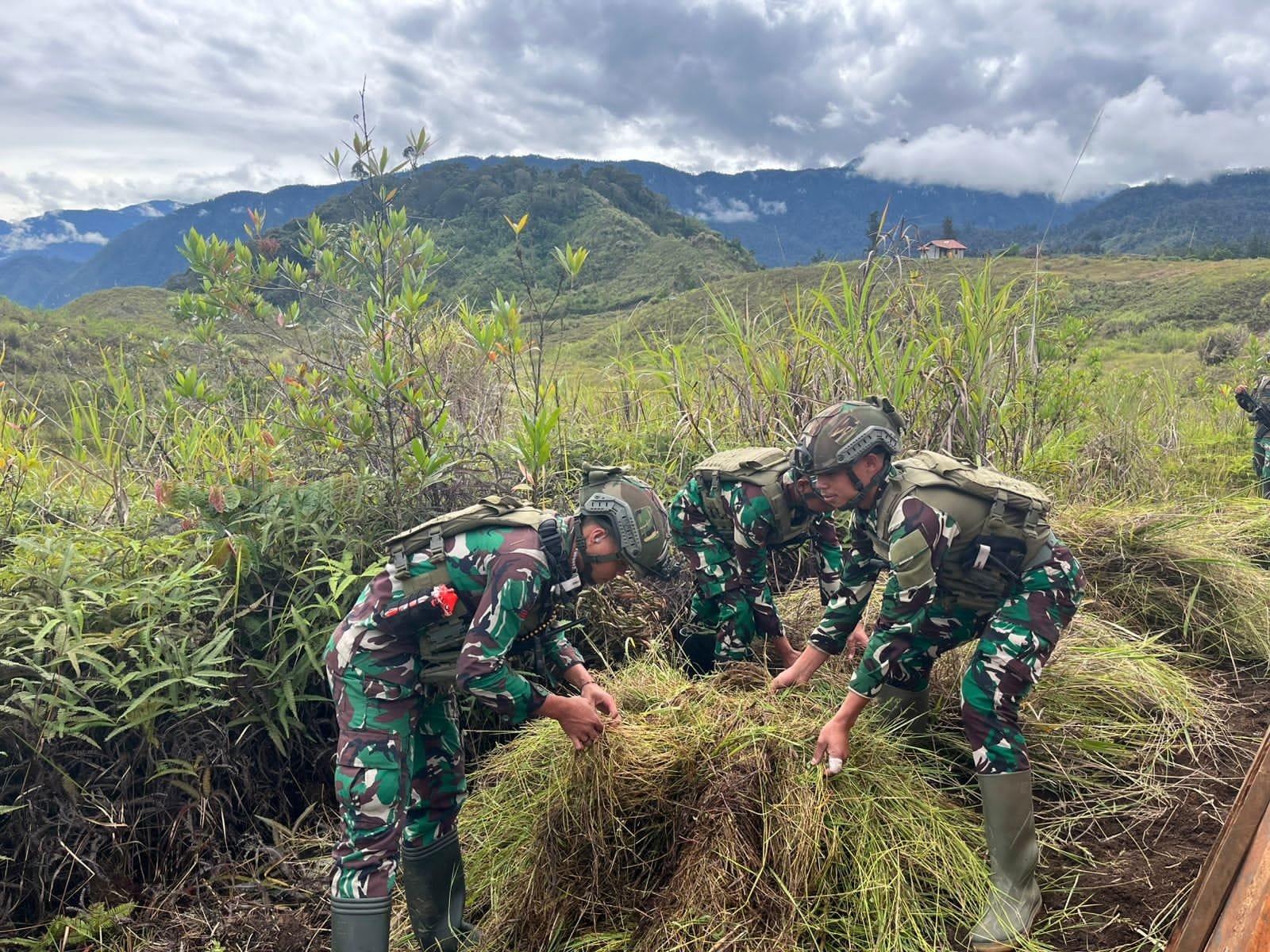 Dipimpin oleh Serka Juli, para prajurit terjun langsung ke lokasi, mengangkat batang kayu, menyusun struktur, dan turut serta menyempurnakan rumah adat khas Papua tersebut. Di balik peluh dan lumpur yang menempel, terpancar semangat pengabdian dan cinta tanah air.