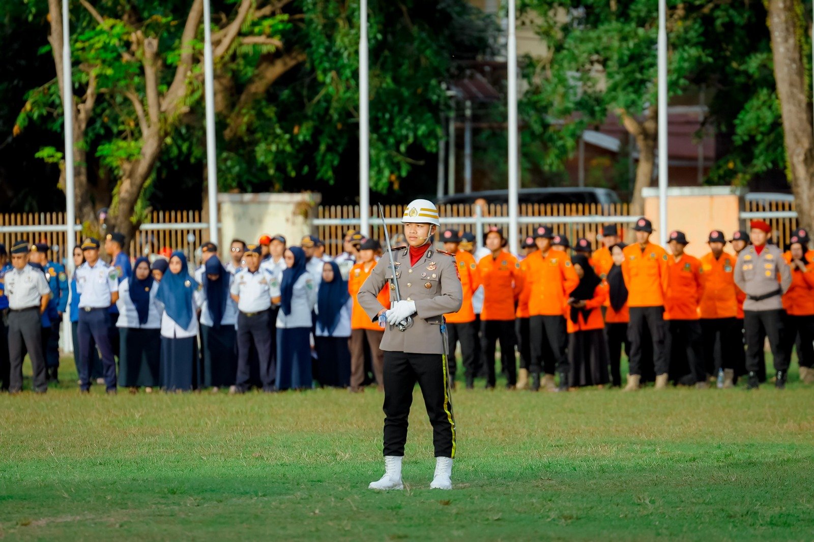 Di bawah komandonya, pasukan pengibar bendera menurunkan Sang Merah Putih dengan sempurna dan penuh hormat, menghadirkan momen yang menginspirasi. Suaranya yang menggelegar saat memberikan penghormatan dan laporan kepada Inspektur Upacara, Wakil Bupati Abustan A. Bintang, menambah khidmat suasana menunjukkan disiplin dan profesionalisme yang tinggi.