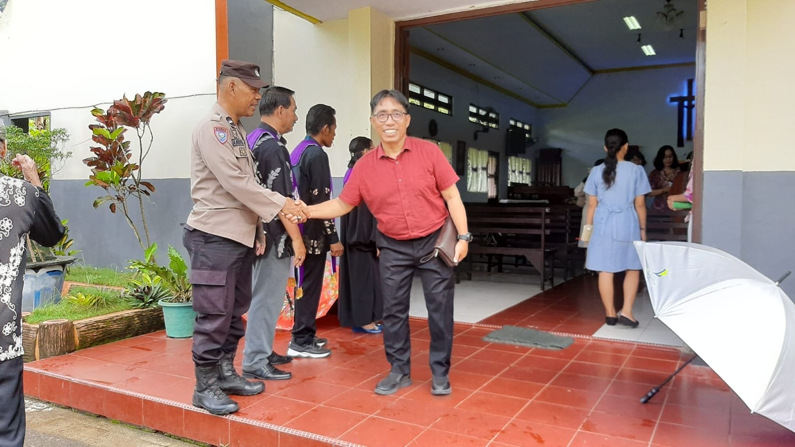 Selain melakukan pengamanan, Bhabinkamtibmas juga turut memantau situasi di sekitar gereja, termasuk pengaturan kendaraan jemaat yang terparkir di halaman gereja guna mengantisipasi terjadinya gangguan keamanan serta memastikan situasi tetap kondusif selama kegiatan berlangsung.