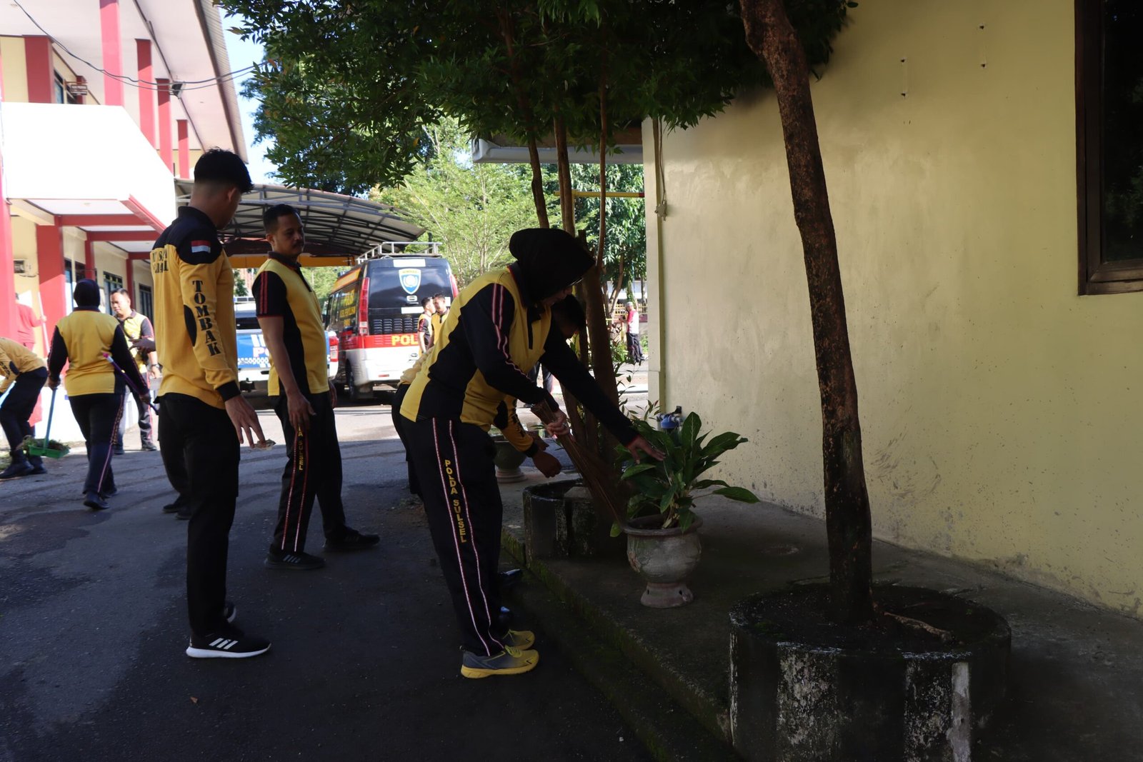 Dengan semangat kebersamaan dan penuh antusias, kegiatan Jumat Bersih berjalan lancar dan diakhiri dengan apel pengecekan serta arahan singkat dari Kapolres kepada seluruh personel.