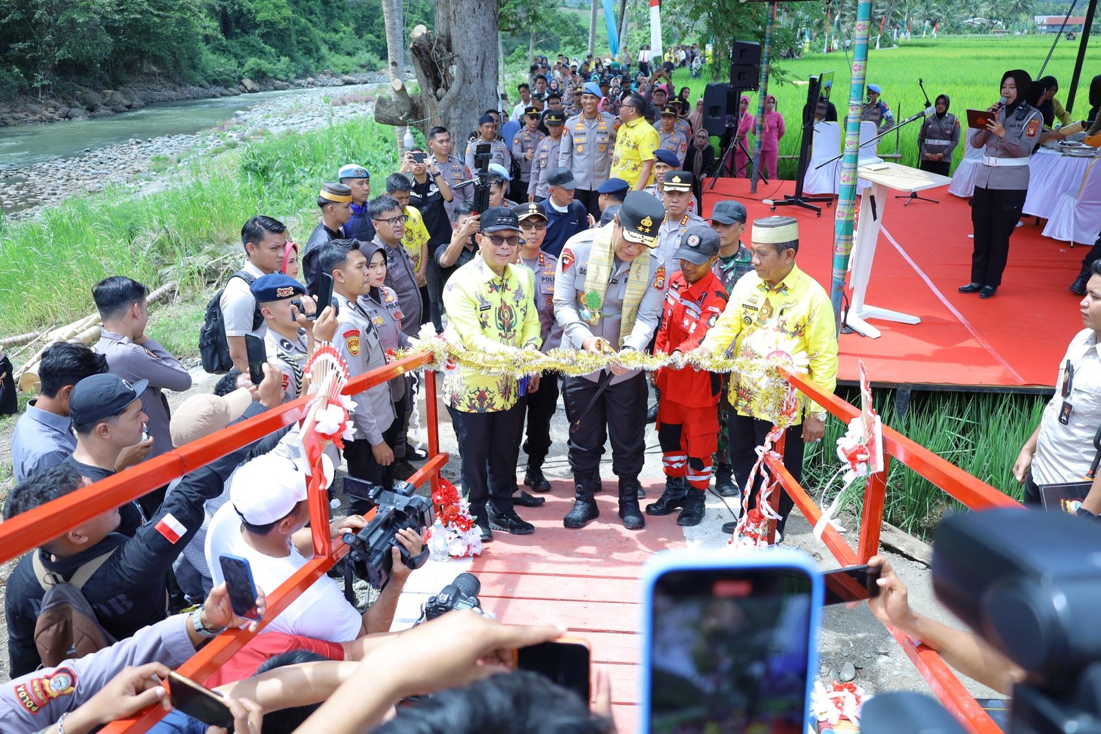 “Pembangunan jembatan ini merupakan instruksi Bapak Presiden yang memerintahkan kami untuk hadir membantu masyarakat. Kami menargetkan pembangunan selesai dalam dua minggu, dan alhamdulillah hari ini jembatan ini dapat kita resmikan,” ujar Kapolda.
