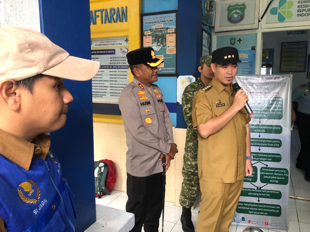 Dalam peninjauan tersebut, Wamenkes RI bersama rombongan melakukan pengecekan setiap ruangan Puskesmas, yang dipandu langsung oleh Kepala Puskesmas Sabutung, Harmawati, S.Kep., Ns. Kegiatan ini bertujuan untuk melihat secara langsung kondisi fasilitas pelayanan kesehatan serta kesiapan tenaga kesehatan di wilayah kepulauan.