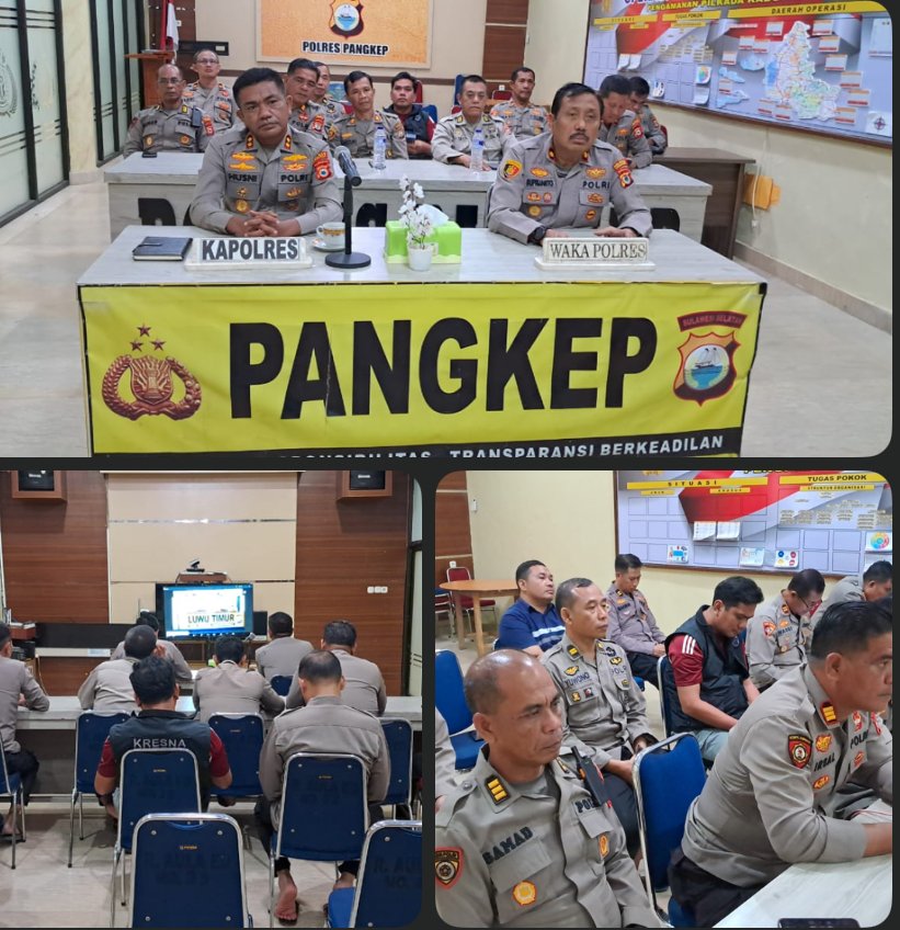 Kegiatan tersebut diikuti oleh seluruh jajaran Polda dan Polres se-Sulawesi Selatan, termasuk jajaran Polres Pangkep yang dipimpin oleh Kapolres Pangkep AKBP Muhammad Husni Ramli, S.I.K., M.H., M.Tr.Opsla., didampingi oleh Wakapolres Pangkep Kompol Sugeng Suprijanto, S.Pd., M.H., serta dihadiri oleh para Kabag, Kasat, dan Kasi Polres Pangkep.