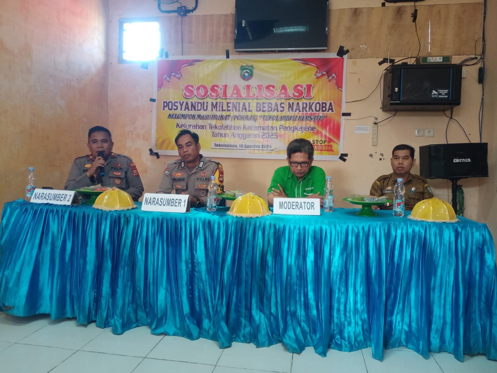 Bidik-jurnalis.com. Pangkajene – Upaya pencegahan penyalahgunaan narkoba terus digencarkan Polri bersama masyarakat. Hal itu terlihat dalam kegiatan Sosialisasi Posyandu Milenial Bebas Narkoba yang digelar di Aula Kantor Kelurahan Tekolabbua, Rabu (20/8/2025).
