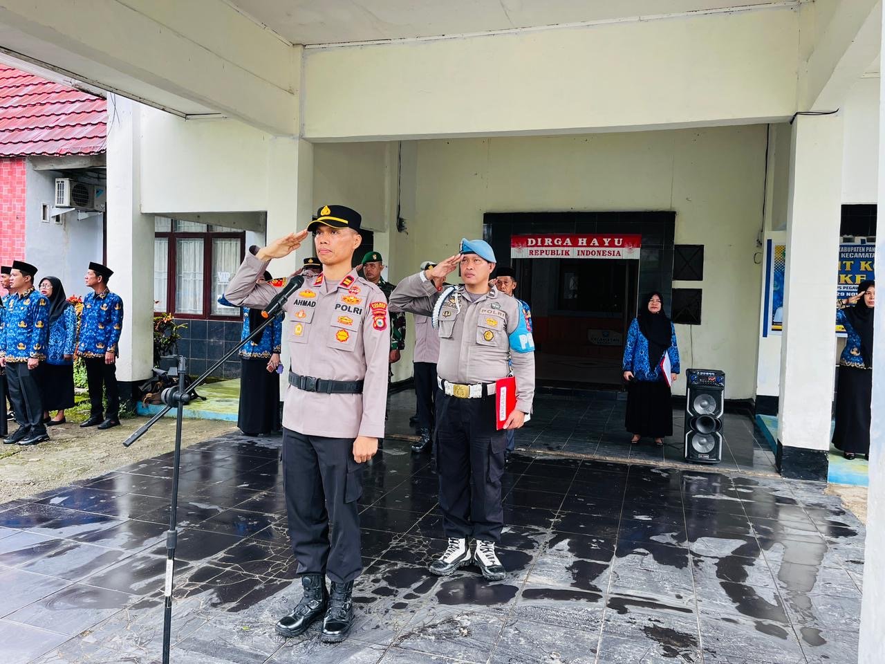 Upacara tersebut diikuti oleh unsur Forkopimcam, aparatur sipil negara (ASN), personel TNI-Polri, serta staf kecamatan.
