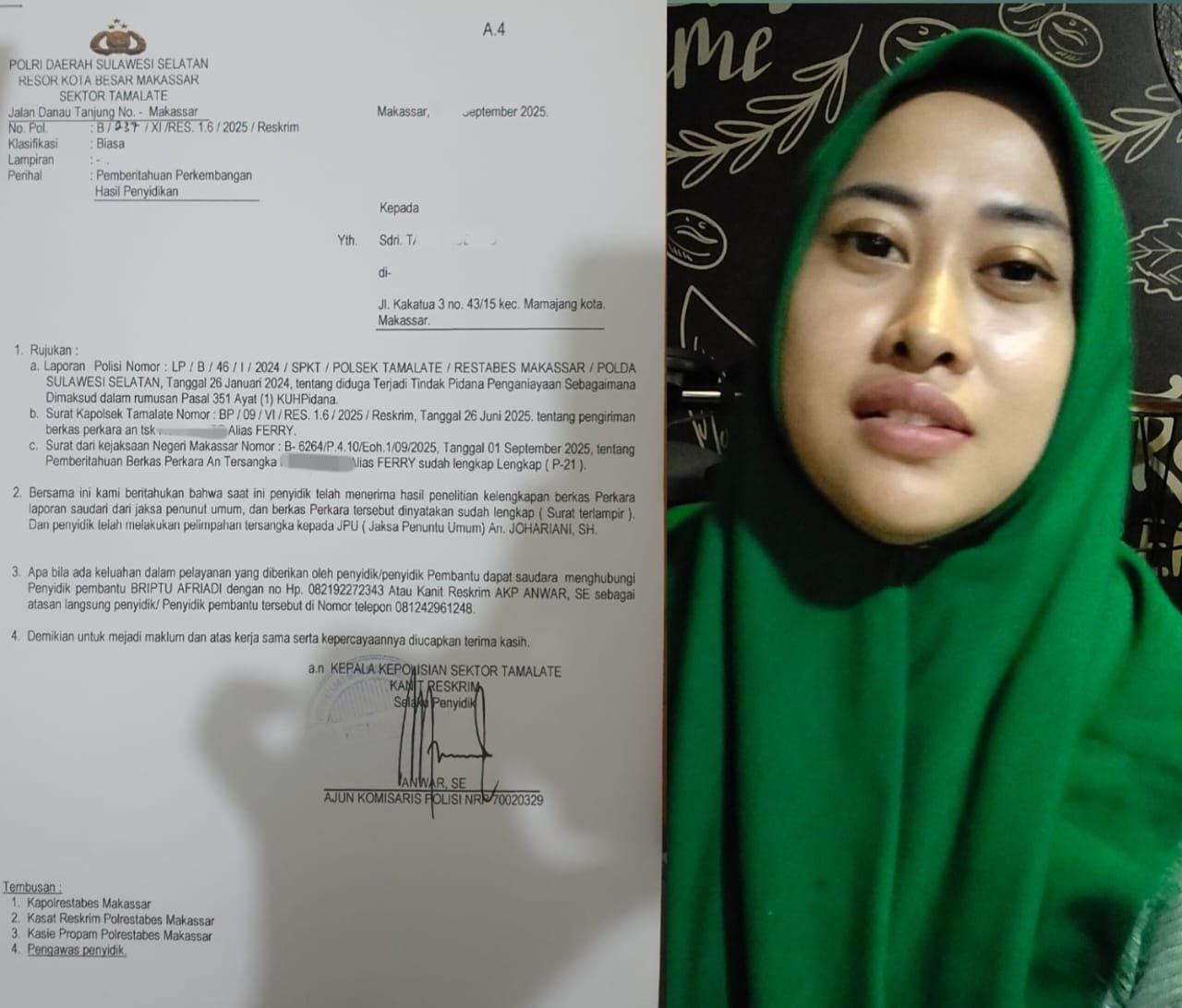 Kepastian itu tertuang dalam surat resmi Polsek Tamalate bernomor B/237/XI/RES.1.6/2025/Reskrim, yang ditandatangani Kanit Reskrim AKP Anwar, S.E. Surat tersebut disampaikan kepada pelapor, Tanty Rudjito, sebagai bentuk pemberitahuan perkembangan hasil penyidikan.