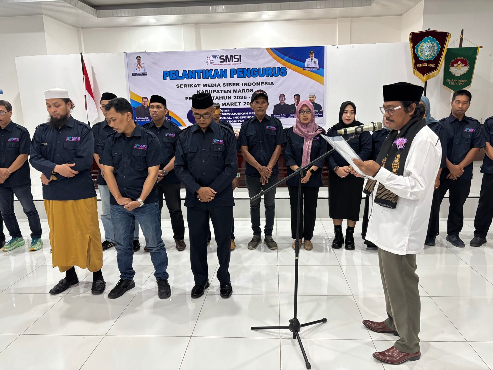Bidik-jurnalis.com, MAROS, – Pengambilan sumpah dan janji Pengurus Serikat Media Siber Indonesia (SMSI) Kabupaten Maros oleh Ketua SMSI Provinsi Sulawesi Selatan, Anwar Sanusi, yang dilanjutkan dengan penyerahan Bendera Pataka oleh Bupati Maros, Dr.H.A.S. Chaidir Syam, S.IP., M.H, menandai hadirnya kepengurusan baru di Buttasalewangan.