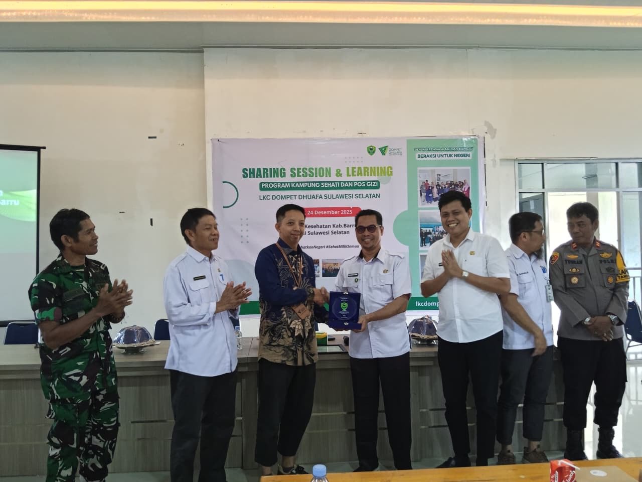 LKC Dompet Dhuafa Sulawesi Selatan juga memberikan Plakat Penghargaan kepada Dinas Kesehatan Kab. Barru sebagai bentuk terimakasih karena telah bersinergi dalam pelaksanaan program Kampung Sehati dan Pos Gizi Humia Trust.
