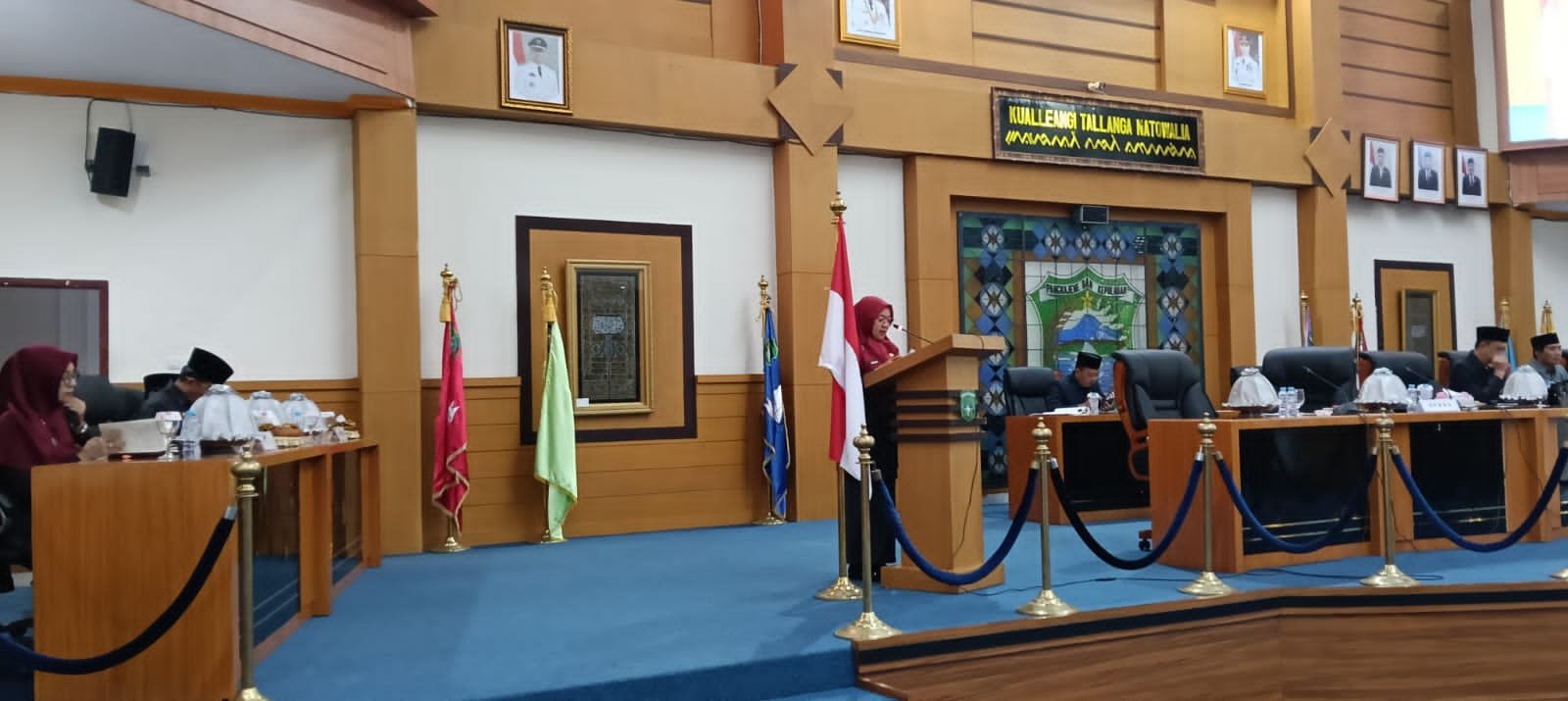 Usai penyerahan kedua laporan dan rancangan tersebut Sekda Pangkep Hj Suriani saat membacakan tentang laporan keterangan pertanggungjawaban LKPJ kepala daerah tahun 2024.