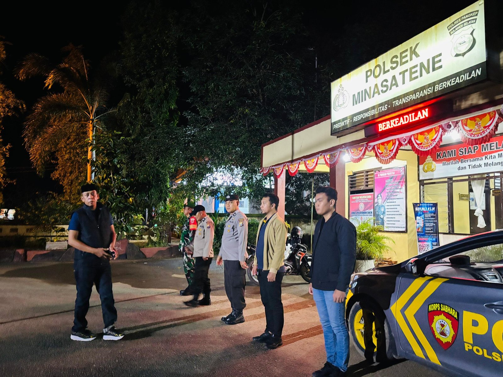 Bidik-jurnalis.com, MINASATENE, PANGKEP, – Pada hari Senin tanggal 22 Desember2025, pukul 20.30 Wita personil Polsek Minasatene bersama personil Koramil 1421-02 Minasatene Melaksanakan Patroli gabungam di dalam wilayah hukum Polsek Minasatene.