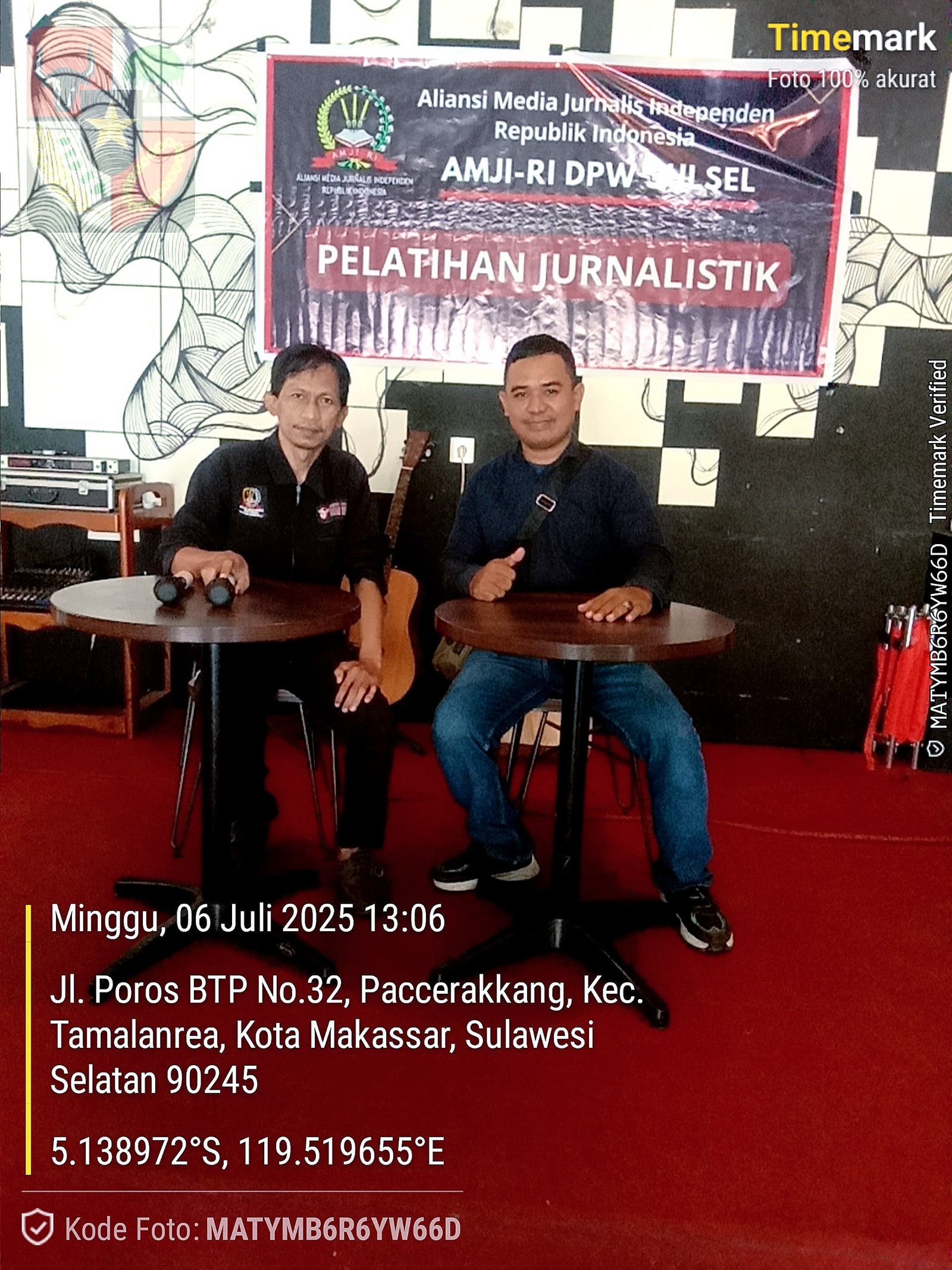 Bidik-jurnalis.com, Makassar, 6 Juli 2025 ā Untuk meningkatkan keterampilan menulis dan membangun semangat literasi di kalangan generasi muda, sebuah pelatihan jurnalistik digelar di Cafe Original BTP, Makassar, pada Sabtu (5/7). Kegiatan ini diikuti oleh puluhan peserta dari berbagai latar belakang, mulai dari pelajar, mahasiswa, hingga komunitas literasi lokal. Sementara menunggu Pemateri datang, peserta duduk santai sambil ambil gambar dokumentasi bersama , tidak lama berlangsung kemudian dilanjutkan dengan Dimulainya TIM Pemateri.