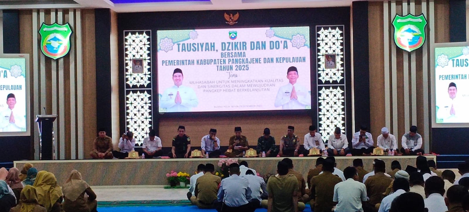 Bidik-jurnalis.com, PANGKEP — Pemerintah Kabupaten Pangkajene dan Kepulauan menggelar kegiatan Tausyiah, Dzikir dan Doa Akhir Tahun 2025 bersama unsur Forkopimda dan seluruh jajaran pemerintahan daerah, pada Senin (29/12/2025) sekitar pukul 09.30 Wita, bertempat di Ruang Pola Pemda Pangkep, Jalan Sultan Hasanuddin, Kelurahan Bonto Kio, Kecamatan Minasatene, Kabupaten Pangkep.