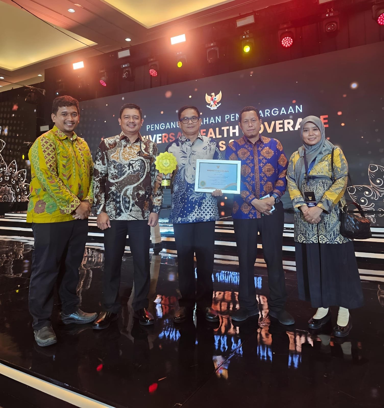 Penghargaan kategori Pratama Universal Health Coverage (UHC) dari Badan Penyelenggara Jaminan Sosial (BPJS) Kesehatan diterima langsung Wakil Bupati Pinrang Sudirman Bungi, S.IP., M.Si dan diserahkan oleh Menteri Koordinator Pemberdayaan Masyarakat Muhaimin Iskandar pada kegiatan Deklarasi dan Pencanangan UHC Nasional yang digelar di Kemayoran, Jakarta, Selasa (27/1/2026).