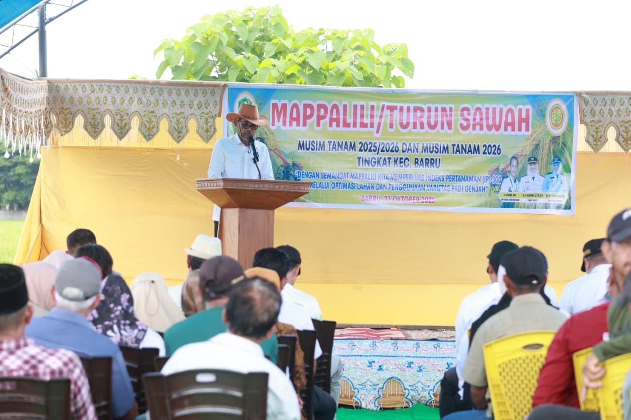 Bidik-jurnalis.com, Barru — Pemerintah Kabupaten Barru kembali melaksanakan tradisi adat Mapalili atau Turun Sawah sebagai penanda dimulainya musim tanam tahun 2025–2026. Kegiatan ini digelar di Larumpia, Kelurahan Mangempang, Kecamatan Barru, pada Rabu (22/10/2025).