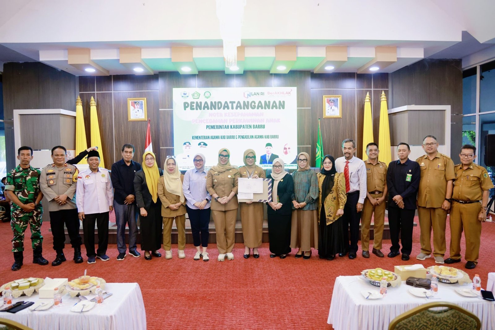 Bidik-jurnalis.com, Barru — Pemerintah Kabupaten Barru kembali menegaskan komitmennya dalam melindungi masa depan generasi muda melalui kegiatan Penandatanganan Nota Kesepahaman Pencegahan Perkawinan Anak, oleh Bupati Barru Andi Ina Kartika Sari, S.H. M.Si, bersama dengan Ketua Pengadikan Agama Maryam Fadhilah Hamdan,SHI dan Kakan Kemenag Barru H.Irman S.Ag. M.Si di Baruga Singkerru AdaE Rujab Bupati Barru, Selasa 25/11/2025.