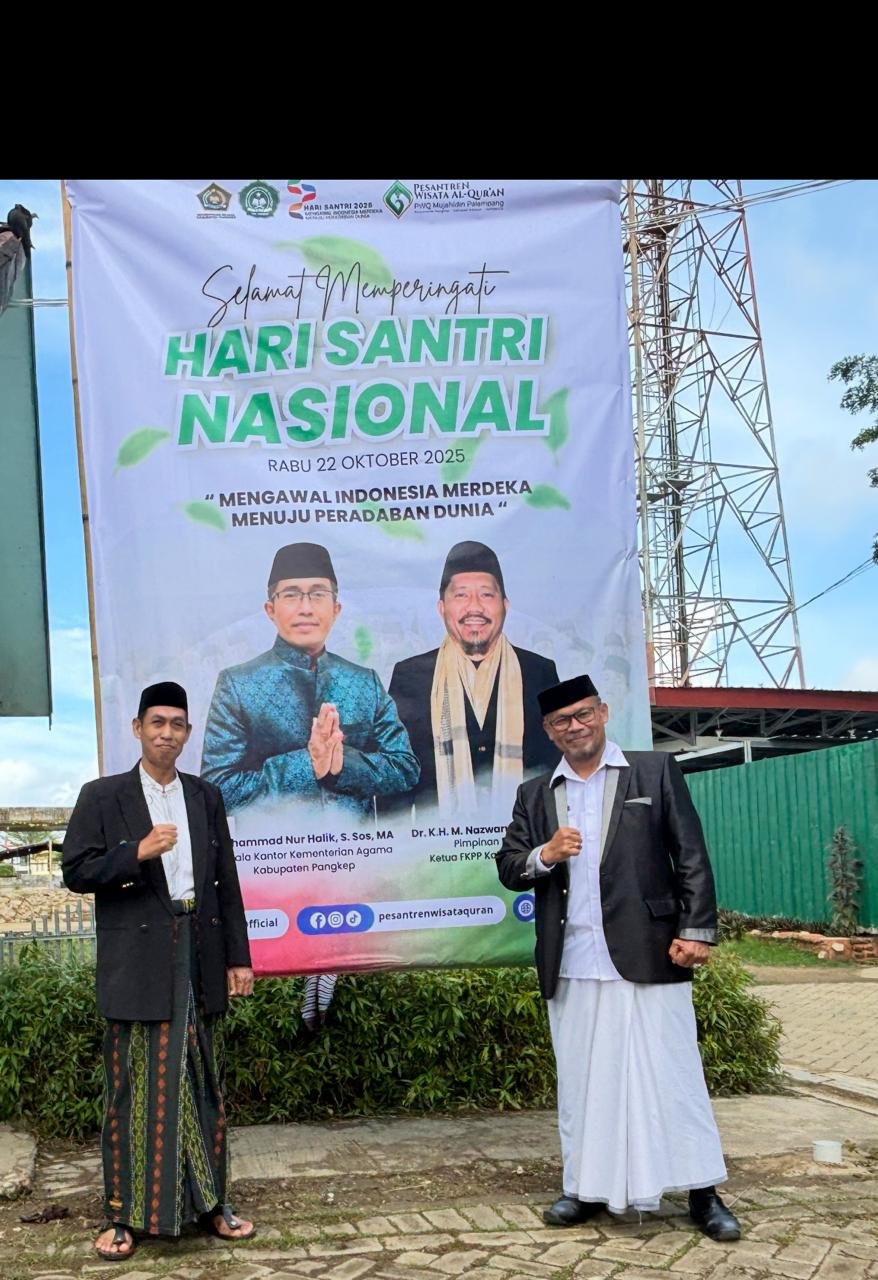 Bidik-jurnalis.com, Pangkep – Dalam rangka memperingati Hari Santri Nasional Tahun 2025, seluruh Pengawas Madrasah di lingkungan Kementerian Agama Kabupaten Pangkajene dan Kepulauan turut serta mengikuti Upacara Peringatan Hari Santri yang dilaksanakan di Lapangan Upacara Pondok Pesantren Wisata Qur’an Pangkep, Rabu  22 Oktober 2025.