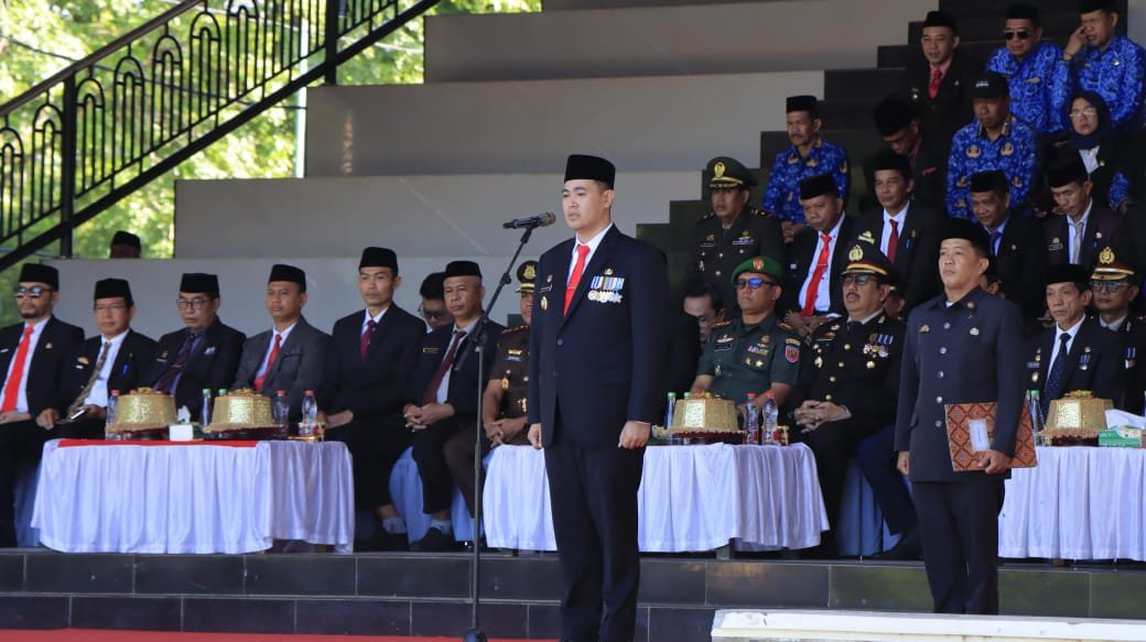 Bupati Pangkep Dr. H. Muh. Yusran Lalogau, S.PI bertindak sebagai inspektur upacara. Turut hadir Wakil Bupati Pangkep Drs. H. Abd Rahman Assaqaf, M.I.Kom, Wakil Ketua I DPRD Ir. H. Andi Ilham Zainuddin, Dandim 1421/Pkp Letkol Inf Fajar, SIP, M.Sc, serta unsur Forkopimda dan pimpinan OPD lingkup Pemkab Pangkep.