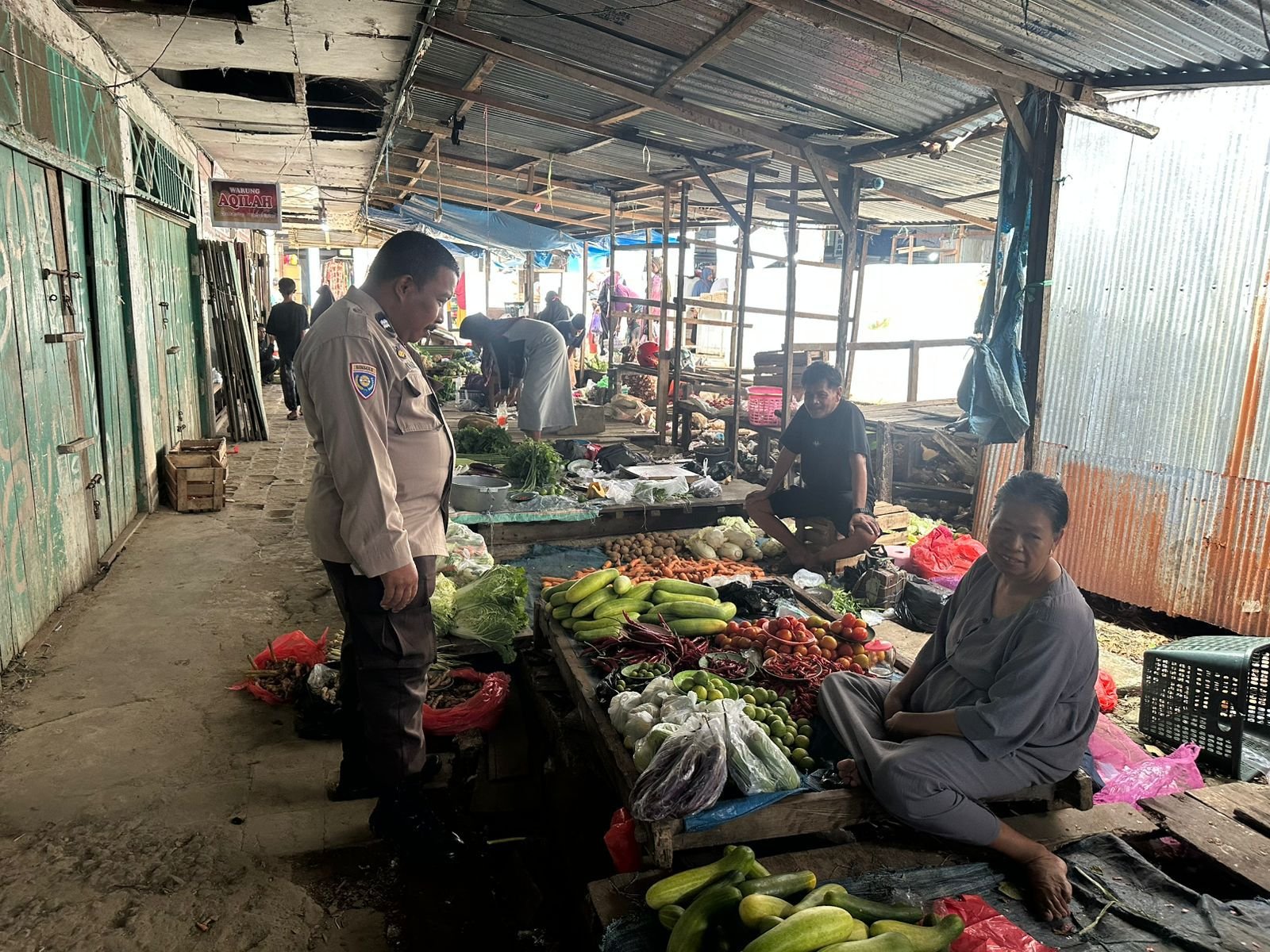 Aiptu Iwan terlihat menyapa para pedagang dan pengunjung pasar sambil memberikan imbauan kamtibmas agar tetap waspada terhadap aksi pencopetan, penipuan, serta menjaga kebersihan lingkungan pasar.