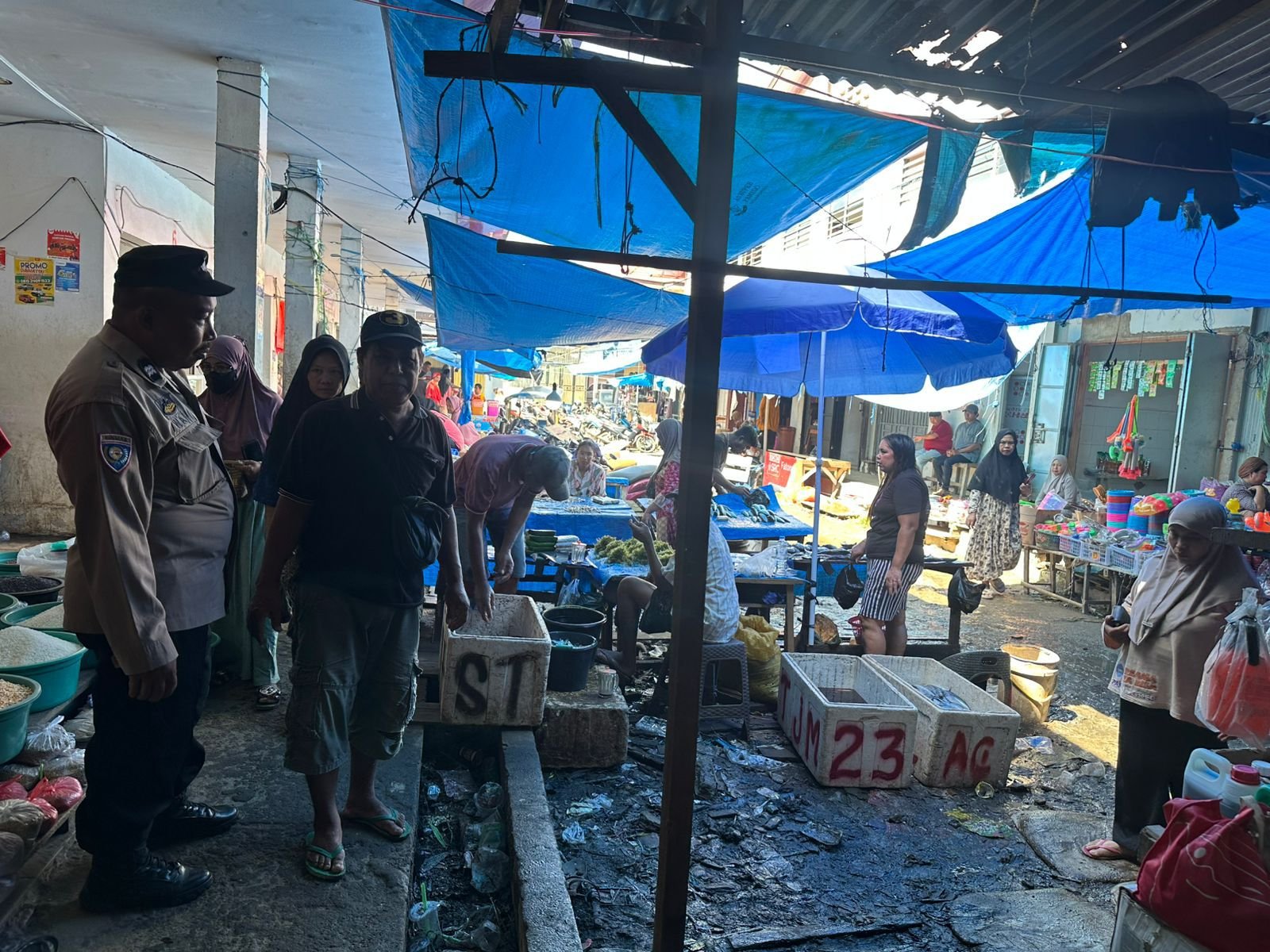 Aiptu Iwan terlihat menyapa para pedagang dan pengunjung pasar sambil memberikan imbauan kamtibmas agar tetap waspada terhadap aksi pencopetan, penipuan, serta menjaga kebersihan lingkungan pasar.