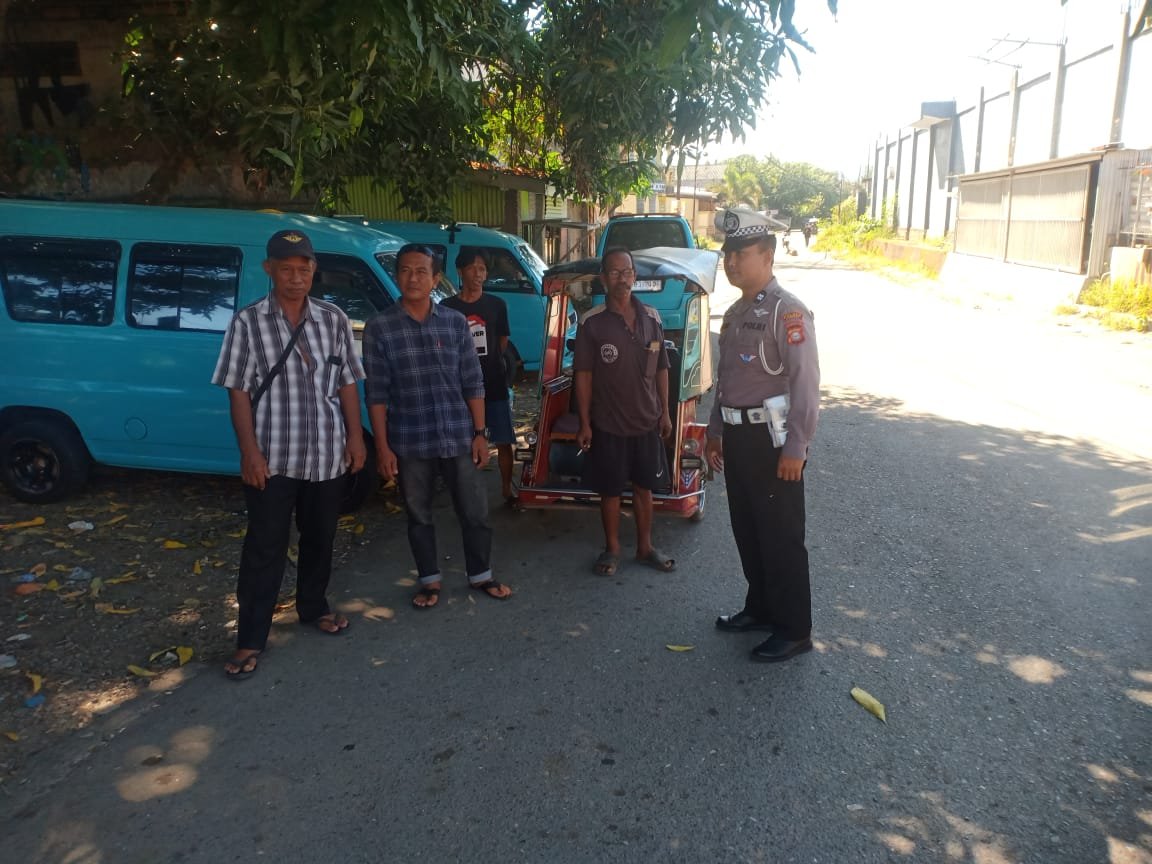 Kegiatan sosialisasi ini menyasar komunitas becak motor (bentor) dan para sopir angkutan kota (angkot) yang kerap beroperasi di wilayah tersebut. Dalam arahannya, Aiptu Hamka Eka Gunawan menekankan pentingnya keselamatan penumpang serta kepatuhan terhadap aturan lalu lintas.