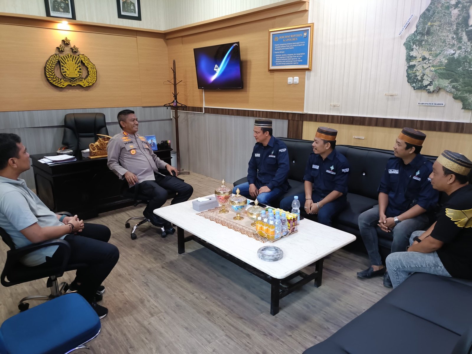 Bidik-jurnalis.com, Pangkep – Kapolres Pangkep AKBP Muhammad Husni Ramli, S.I.K., M.H., M.Tr. Opsla menerima kunjungan audiensi dari Lembaga Badik Celebes Kabupaten Pangkep. Dalam kegiatan tersebut, Kapolres didampingi oleh Kasat Intelkam Polres Pangkep IPTU Zulficar, S.Sos., M.Si. Sementara itu, dari pihak Badik Celebes hadir langsung Ketua Armin Arman beserta perwakilan anggota.