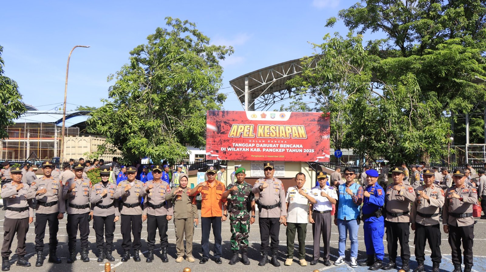 Apel Gelar Pasukan ini diikuti oleh berbagai unsur gabungan yang terdiri dari personel Polres Pangkep, Kodim 1421/Pangkep, Satpol PP, Dinas Perhubungan, BPBD, PLN, dan Damkar Kabupaten Pangkep, sebagai bentuk kesiapan bersama dalam menghadapi kemungkinan terjadinya bencana alam di wilayah hukum Polres Pangkep.