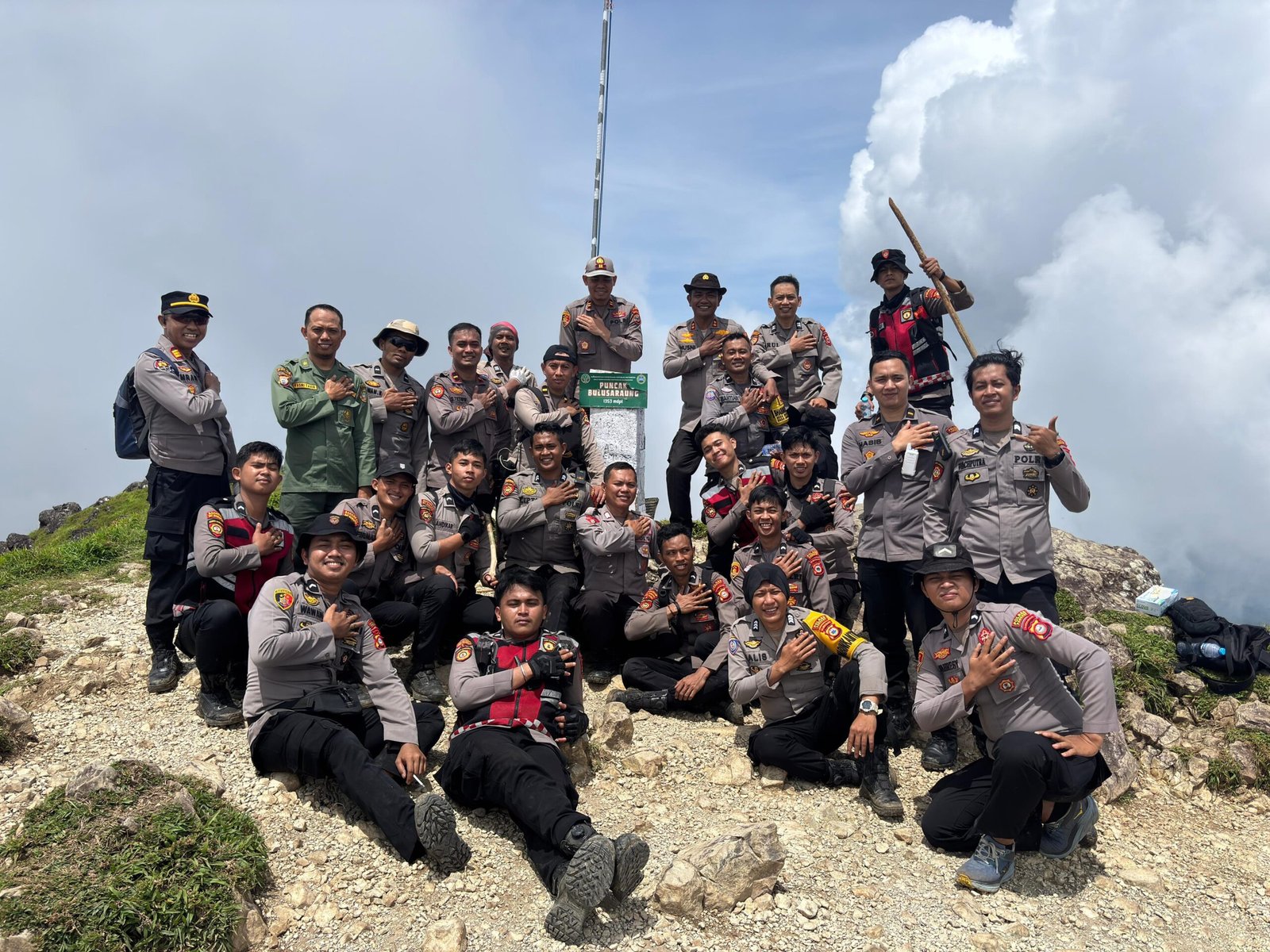 Tak hanya membersihkan, personel juga berdialog dengan masyarakat dan para pendaki, mengajak seluruh pihak untuk bersama-sama menjaga kelestarian Gunung Bulusaraung sebagai aset alam yang harus dilestarikan demi generasi mendatang.