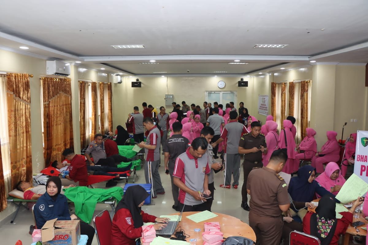 Kegiatan donor darah ini merupakan bagian dari rangkaian peringatan Hari Bhayangkara ke-79 dengan tema “Polri Presisi Mendukung Percepatan Transformasi Ekonomi yang Inklusif dan Berkelanjutan Menuju Indonesia Emas.”