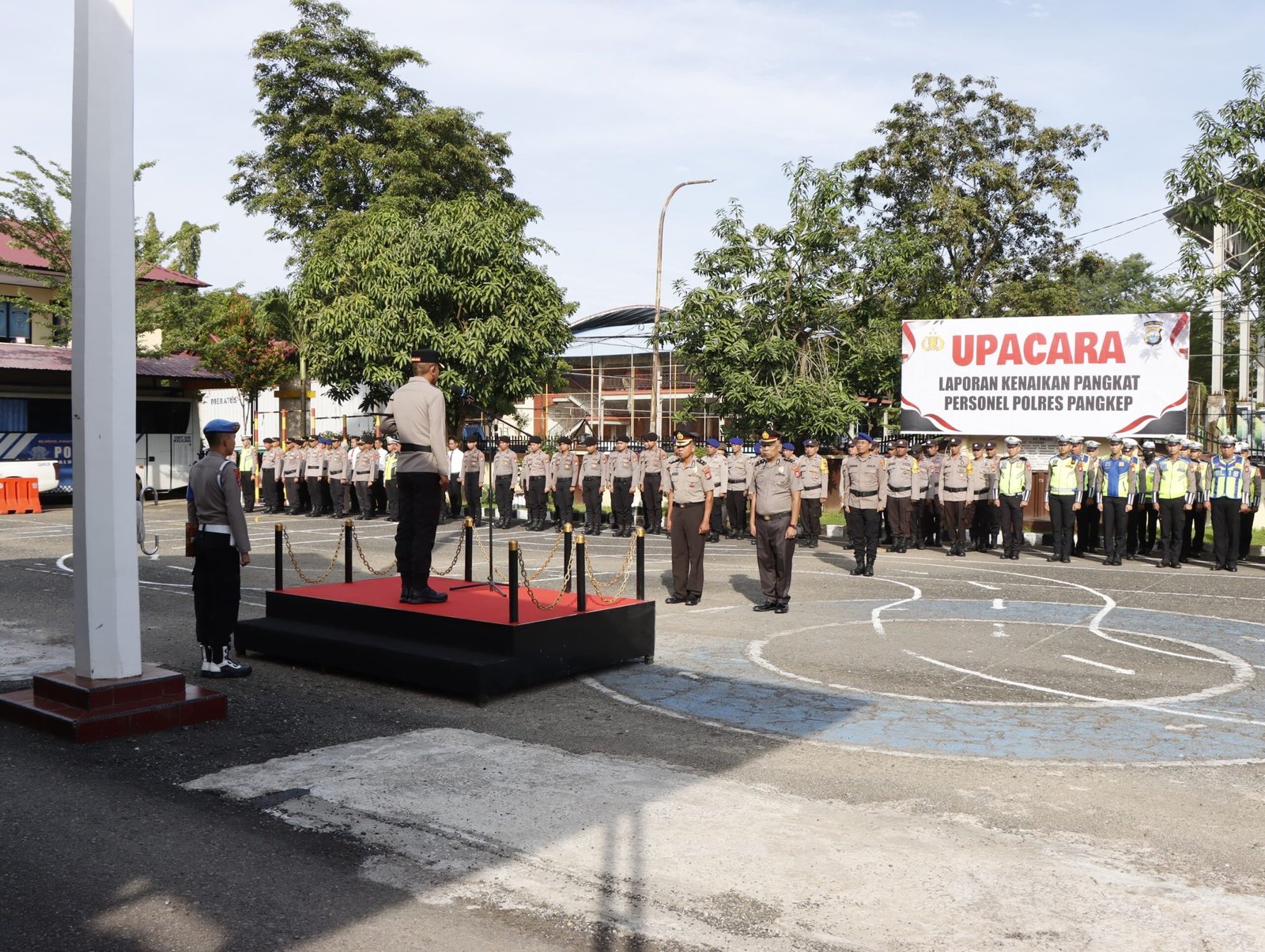 Bidik-jurnalis.com, PANGKEP — Polres Pangkep melaksanakan Upacara Laporan Kenaikan Pangkat Pengabdian bagi personel Polres Pangkep, pada Senin, 02 Maret 2026, pukul 08.00 WITA, bertempat di Halaman Apel Mapolres Pangkep, Jalan Cempaka, Kelurahan Padoang-doangan, Kecamatan Pangkajene, Kabupaten Pangkep.