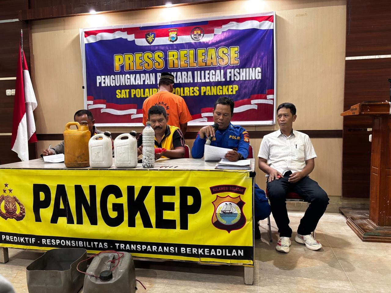 Dalam konferensi pers yang dipimpin oleh Kasi Humas Polres Pangkep AKP Imran, turut hadir Iptu Abd Samad (KBO Sat Polairud), Ipda Muh Guntur (Kanit Gakum), Aiptu Erwan Tangjaya (Penyidik), serta sejumlah awak media dari platform cetak, online, dan televisi.