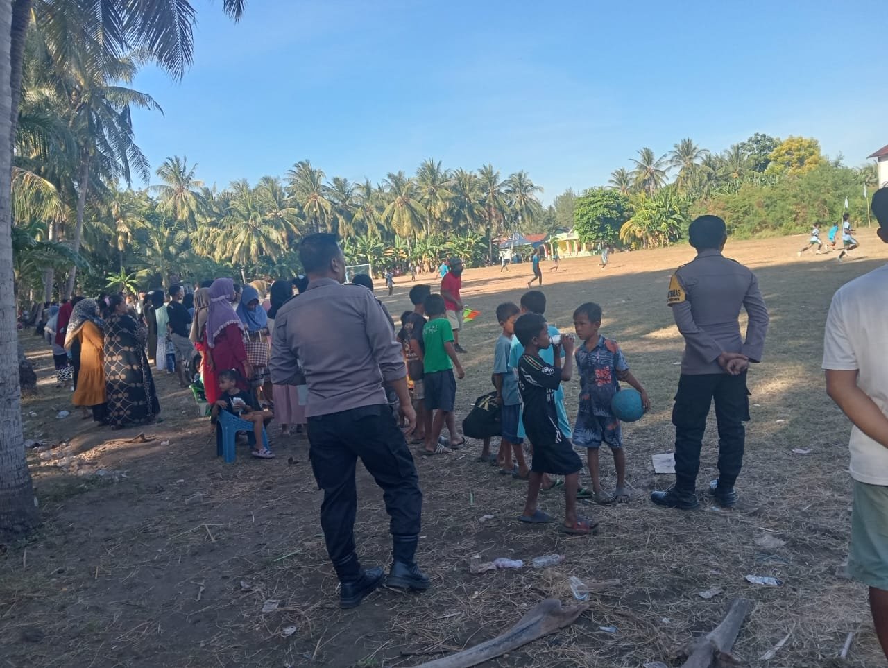 Bidik-jurnalis.com, Liukang Tangaya – Memeriahkan Hari Ulang Tahun Republik Indonesia ke-80, Ps. Kanit Bimmas Polsek Liukang Tangaya Aiptu Rudi Sunjaya bersama Bhabinkamtibmas Bripka Wahyu Hidayat melaksanakan pengamanan pertandingan sepak bola antar warga di lapangan Pulau Sapuka, Kelurahan Sapuka, Rabu (13/8/2025).